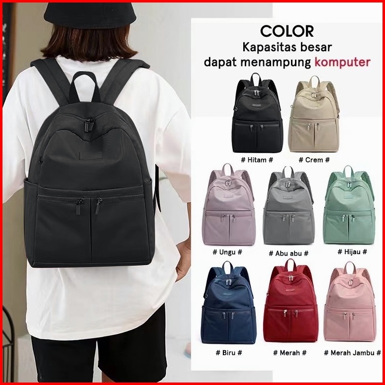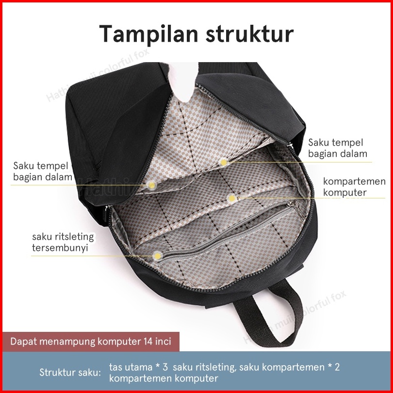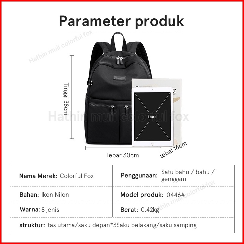 Hathin Muii Colorful Fox 0446 Tas Ransel Wanita Nilon Backpack Wanita Remaja Tas Anti Air 14inch Laptop