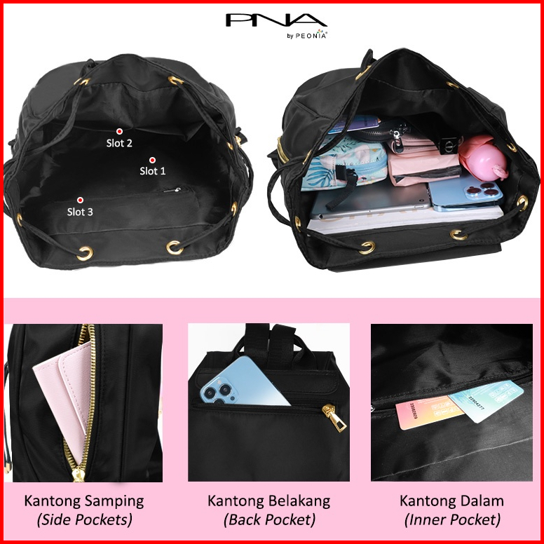 Peonia Pna Seojin Water Resistant Tas Ransel Wanita Import Korea Style Punggung Kantor Kerja Sekolah Kuliah Outdoor Tren