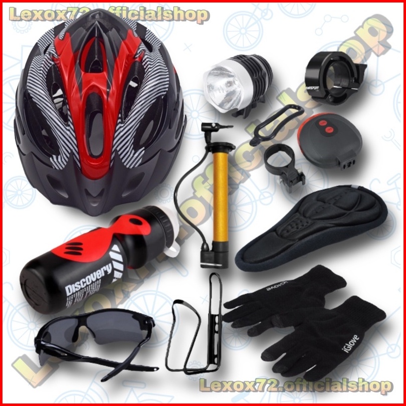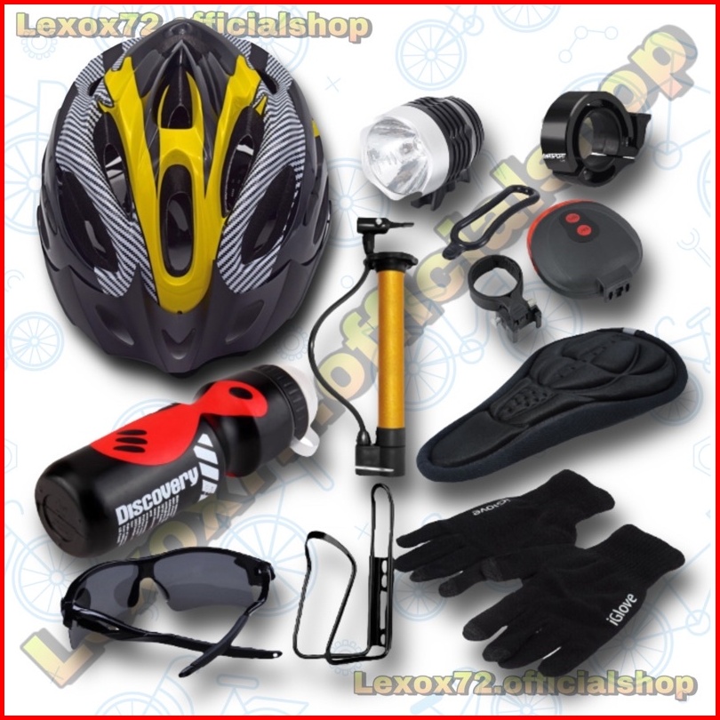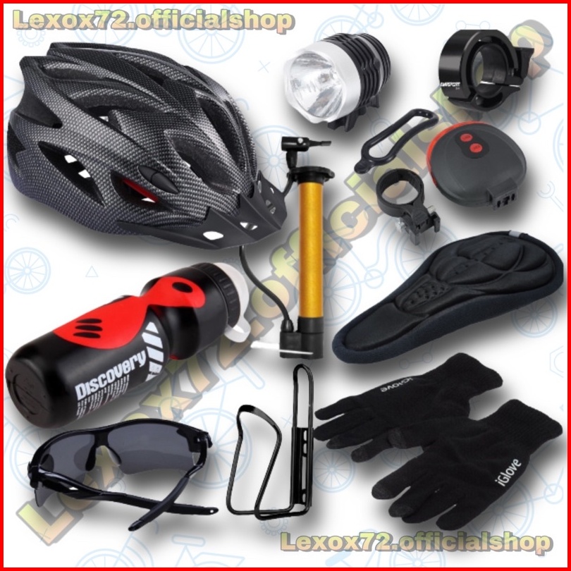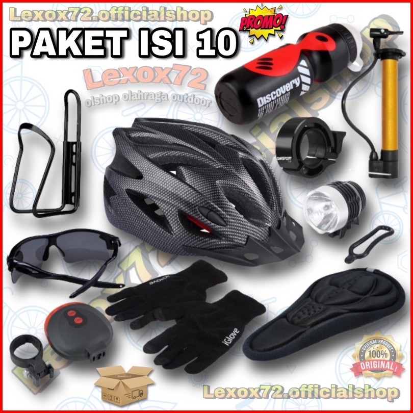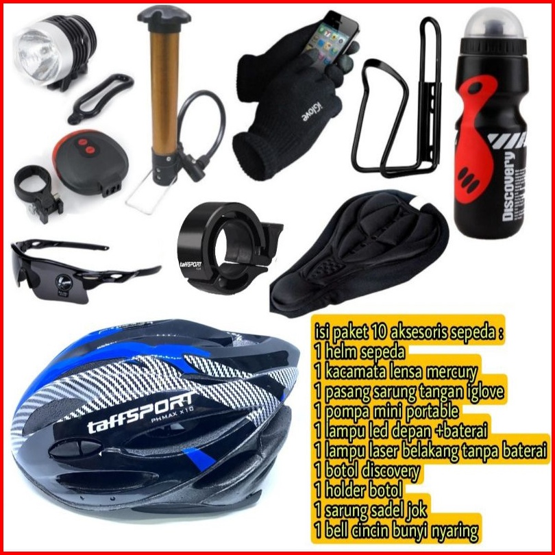 Paket Bersepeda Lengkap Helm Sepeda Mtb Original Taffsport Aksesoris Sepeda Isi 10pcs Barang