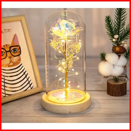 Free Kartu Ucapan Baterai Mawar Led Kado Valentine Kubah Mawar Glass Dome Bunga Mawar Lampu Bucket Bunga Mawar Buket Lam