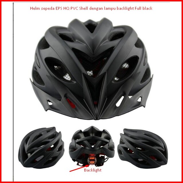 Helm Sepeda Eps Hq Pvc Shell Dengan Lampu Backlight Full Black