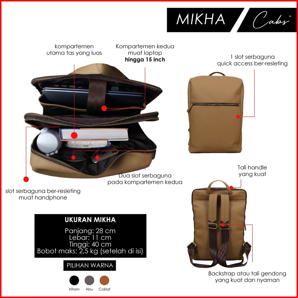 Cabs Pocket - Tas Ransel Wanita Terbaru Kekinian Muat Laptop 16 Inch Backpack Traveling - Mikha Bag