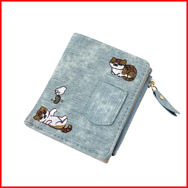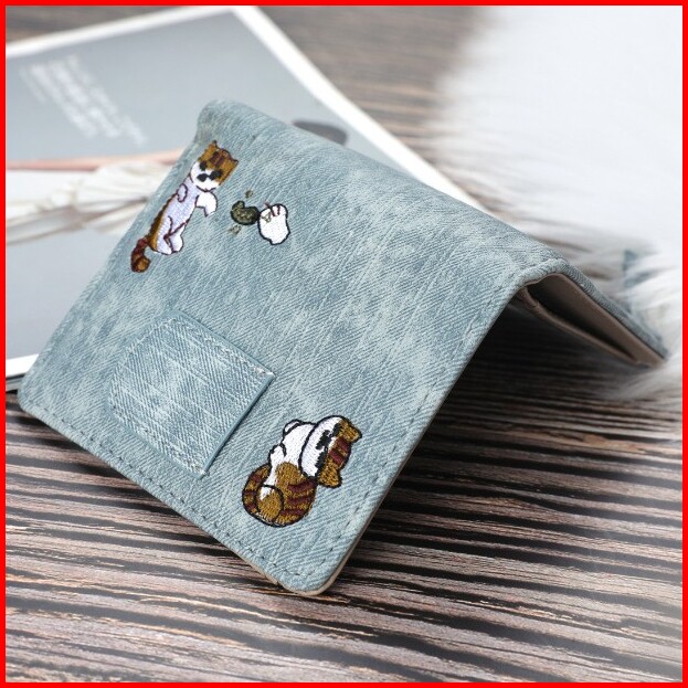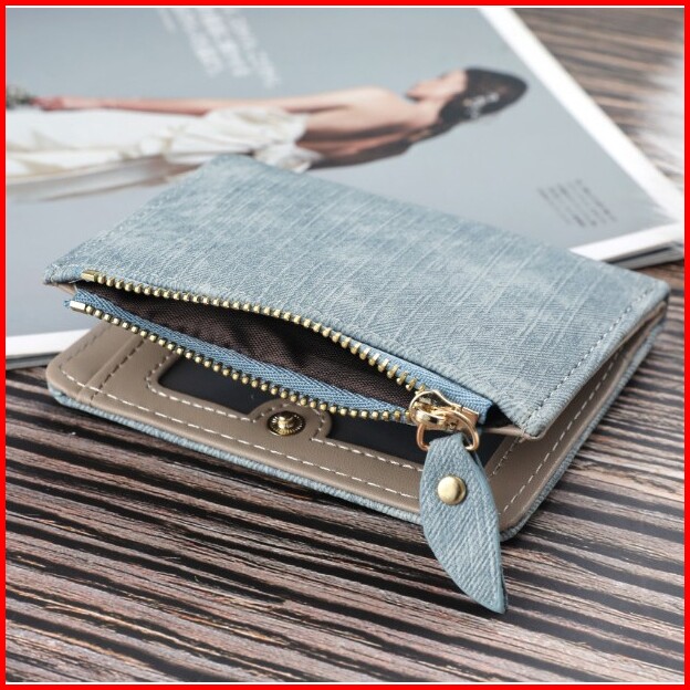 Dompet Wanita Kecil Kulit Kucing Biru Felicia Wa033b2 Murah Abg Fashion Batam Motif Denim Ori