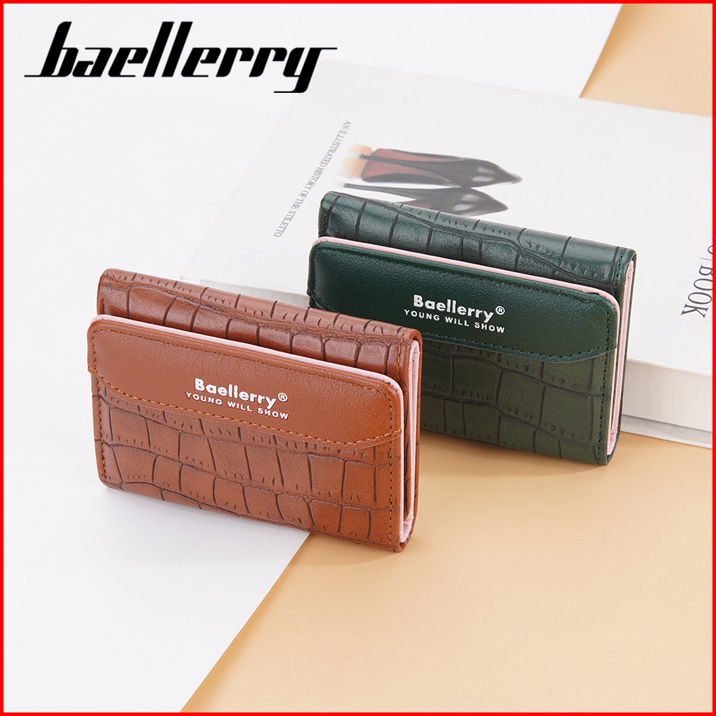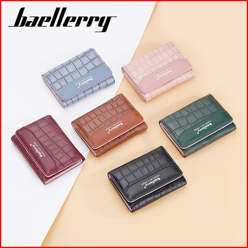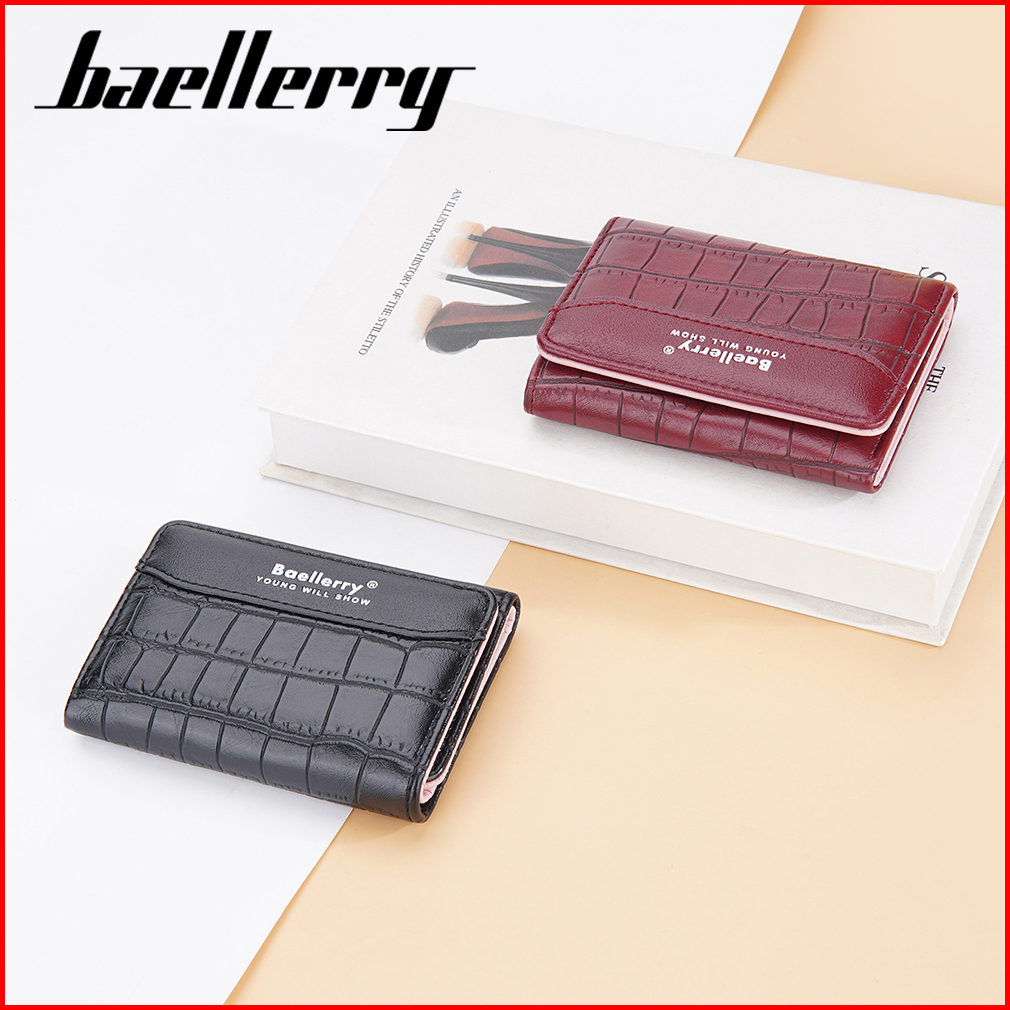 Baellerry N8322 Dompet Wanita Lipat Kecil Bahan Kulit Pu Leather Premium Baeos