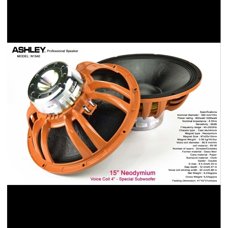 SPEAKER KOMPONEN ASHLEY N1540 15 INCH NEODYMIUM N 1540 COEIL 4 INCH
