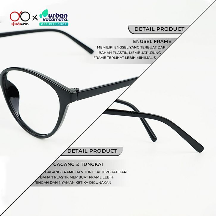 DJAVA X URBAN FRAME YUMNA KACAMATA MINUS PLUS PHOTOCROMIC WANITA CAT EYE KACA MATA BACA GAYA HITAM