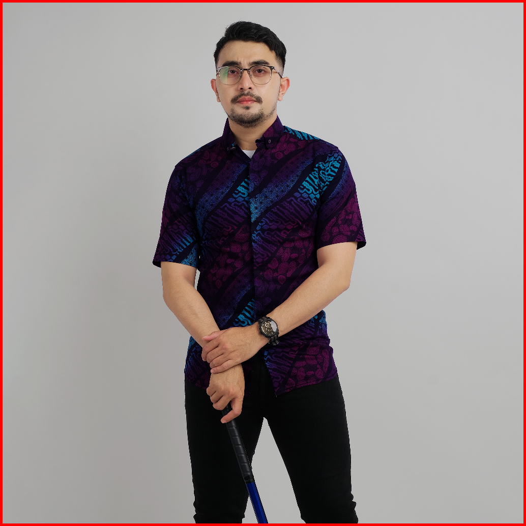 Dgm Kemeja Batik Pria Slim Fit Premium Pendek Gradasi Navy 6127