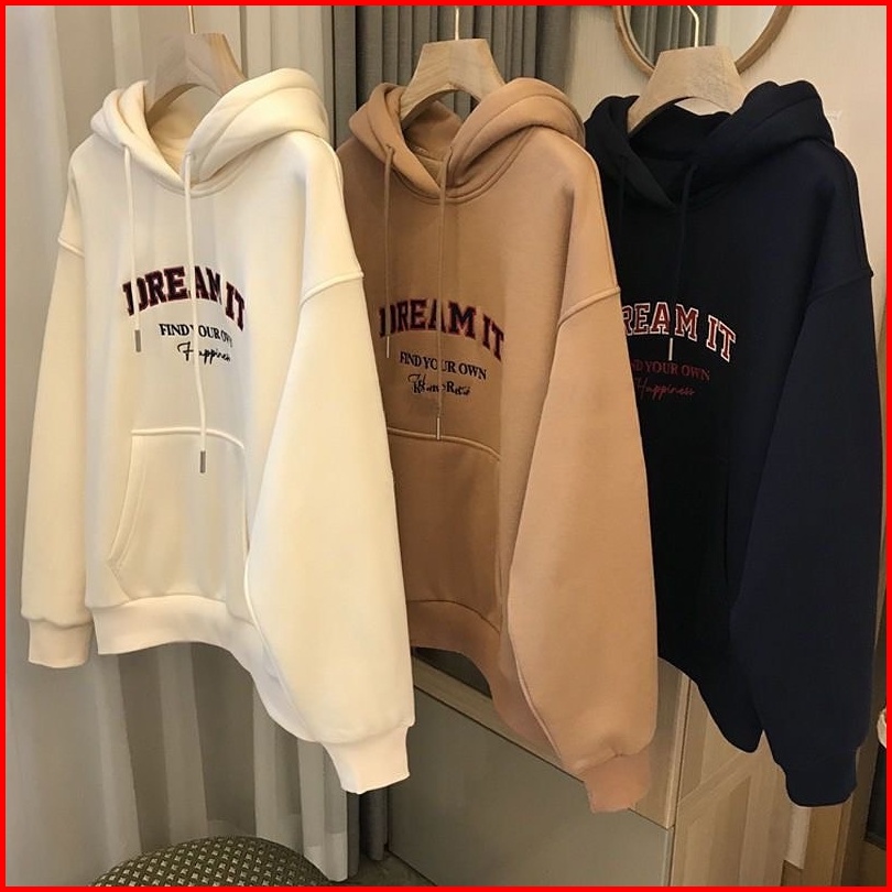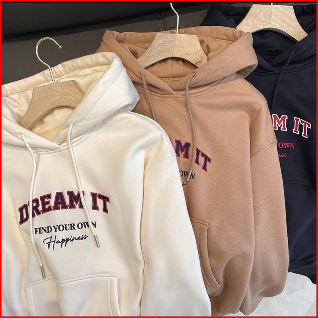 Vallina Premium Sweater Dream It Hoodie Pullover Premium Fleece Tebal Outerwear Basic Remaja Unisex Wanita Pria