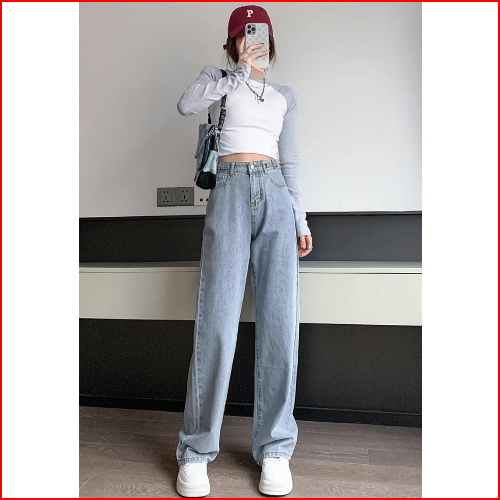 Ct Jeans Korean High Waist Straight Celana Jeans Wanita Kulot Boyfriend Bagy Jeans Wanita