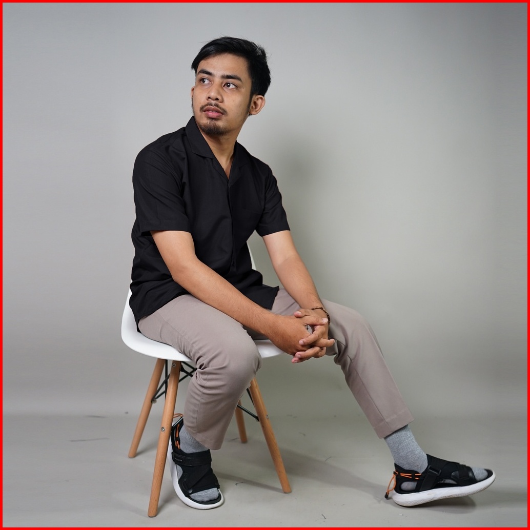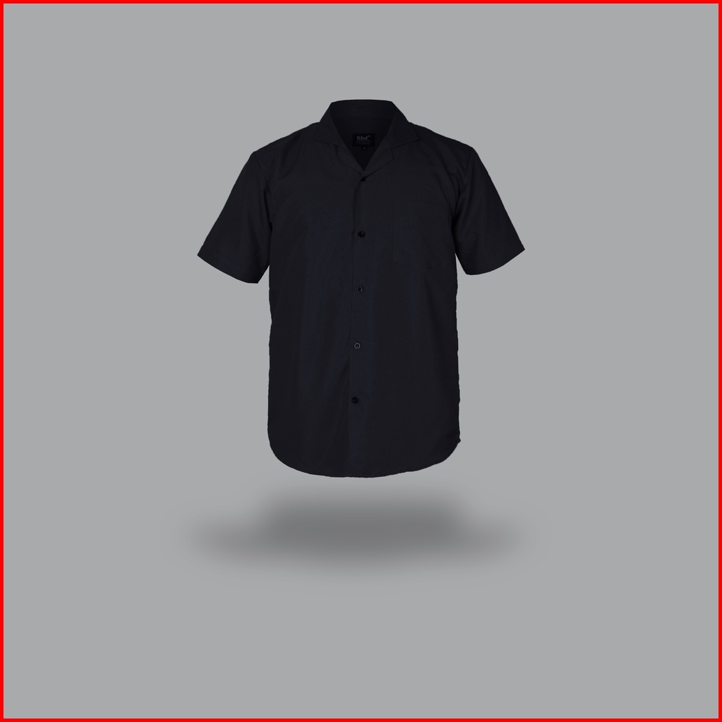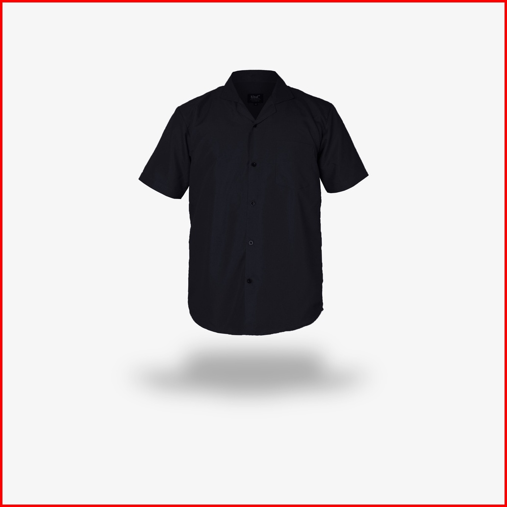 Khaf97 Kemeja Casual Lengan Pendek Pria Helmas Hitam Polos