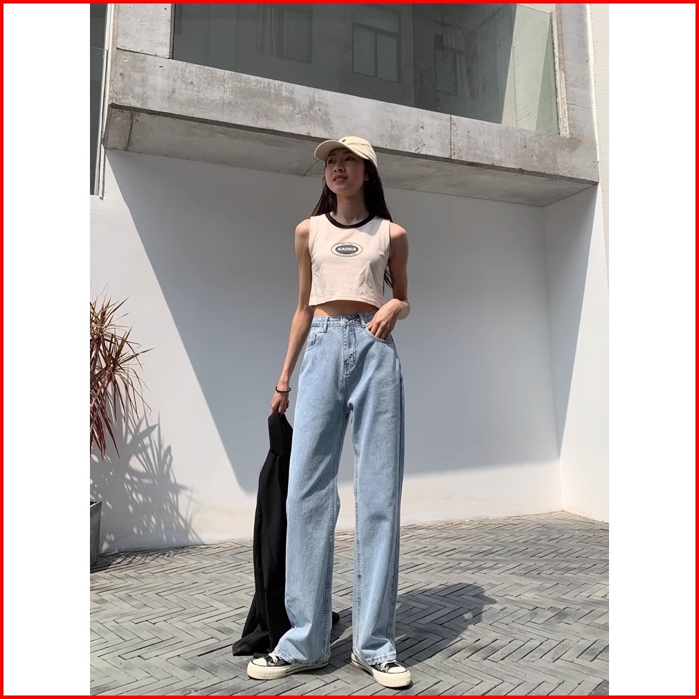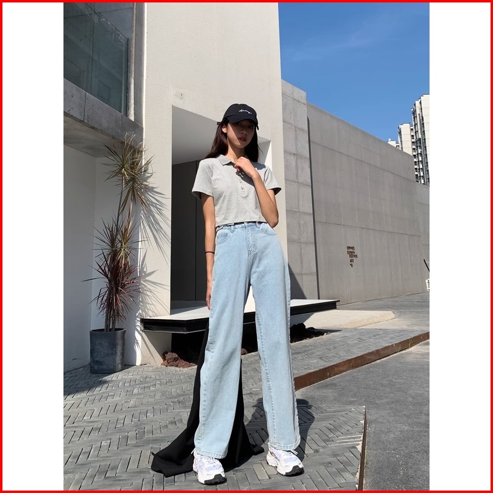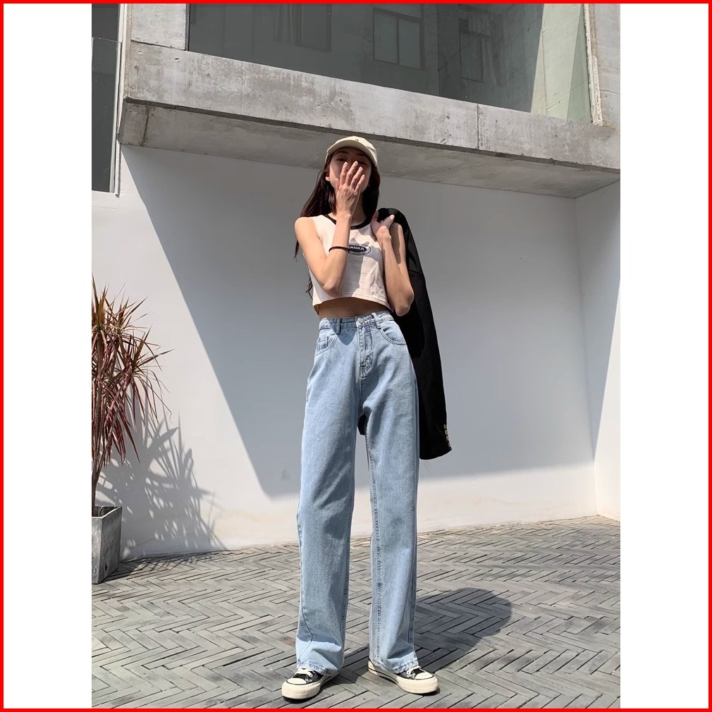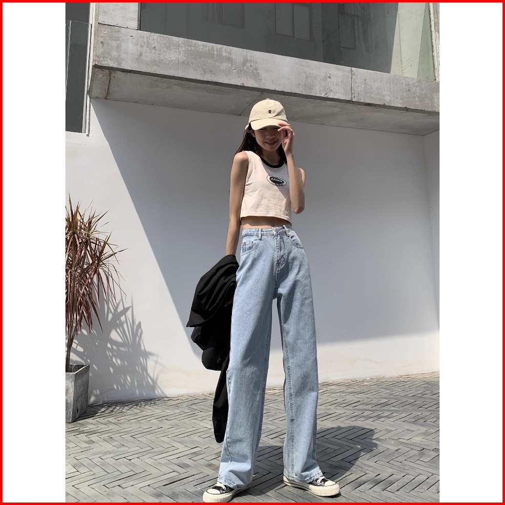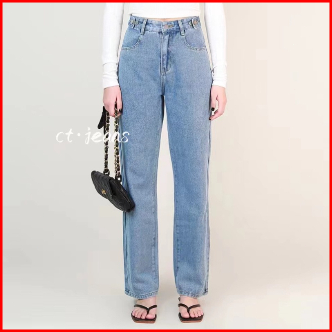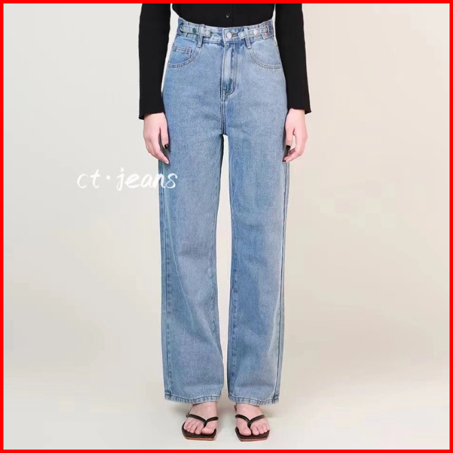 Ct Jeans Highwaist Loose Straight Bagy Jeans Wanita Korea Celana Panjang Kulot Warna Light Jeans Blue