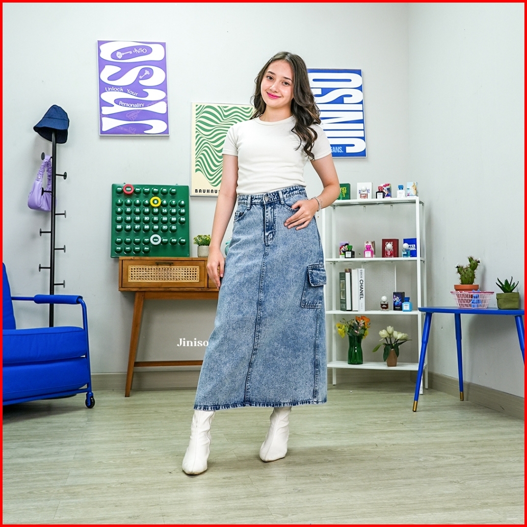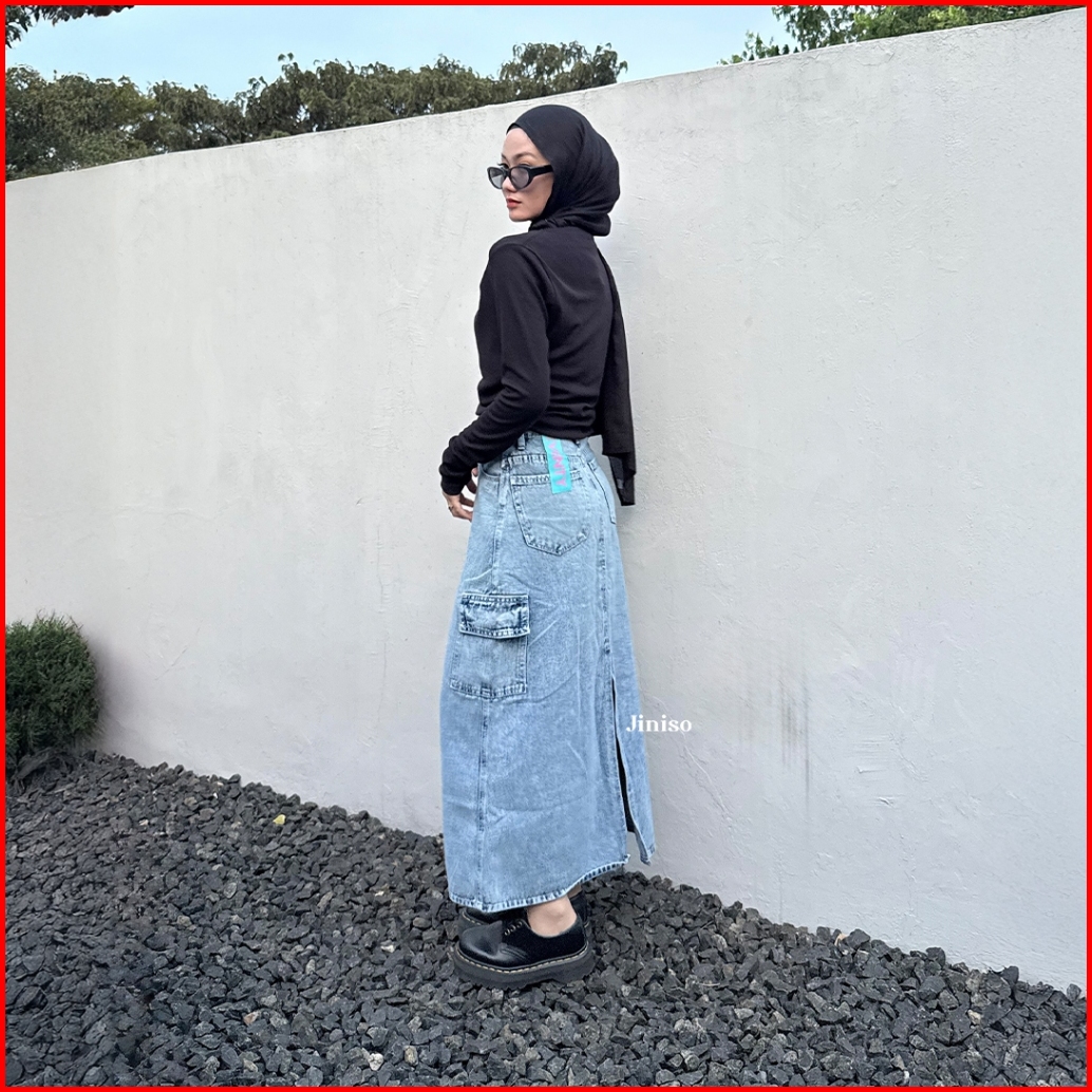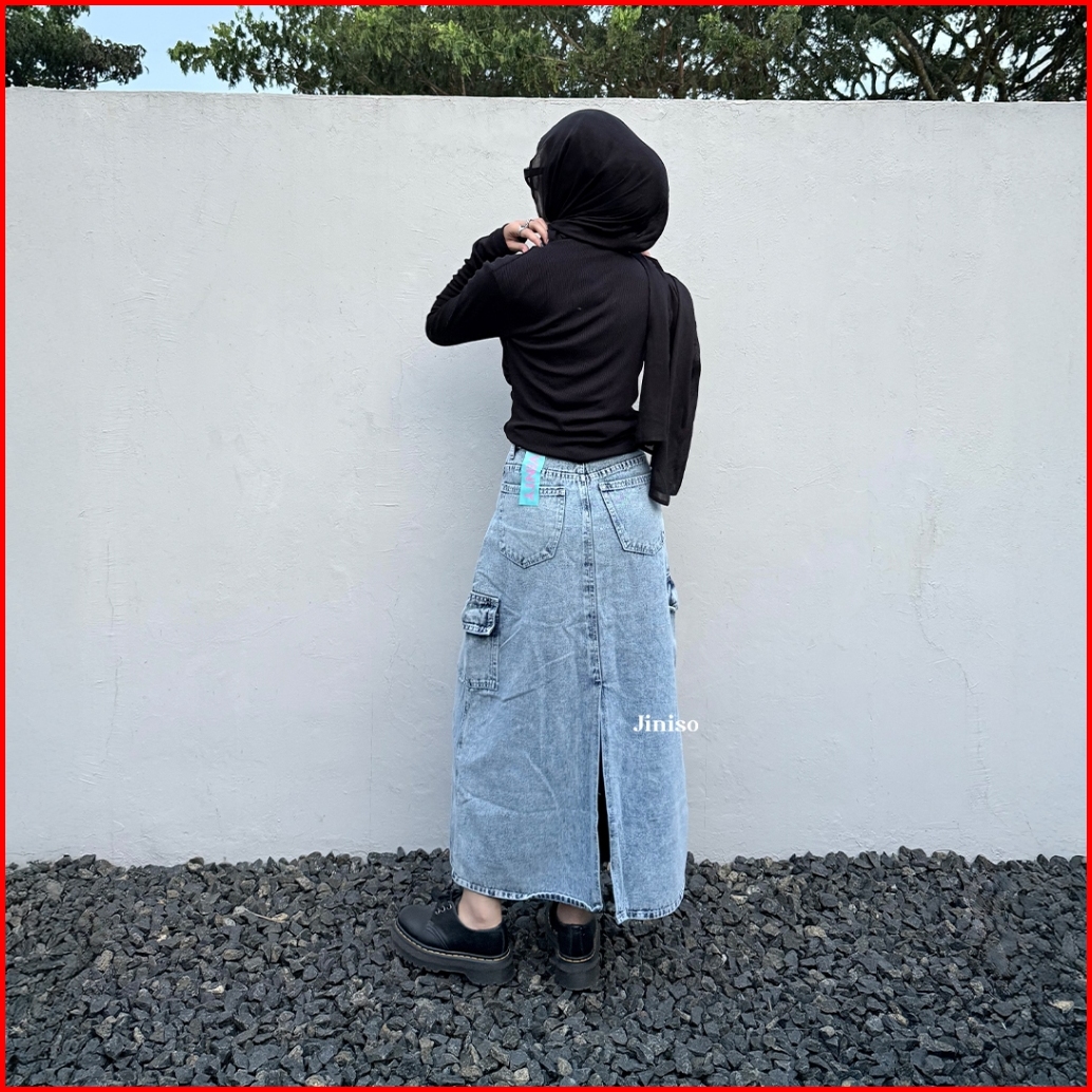 Jiniso - Highwaist Rok Cargo Jeans Panjang 983 Seventy