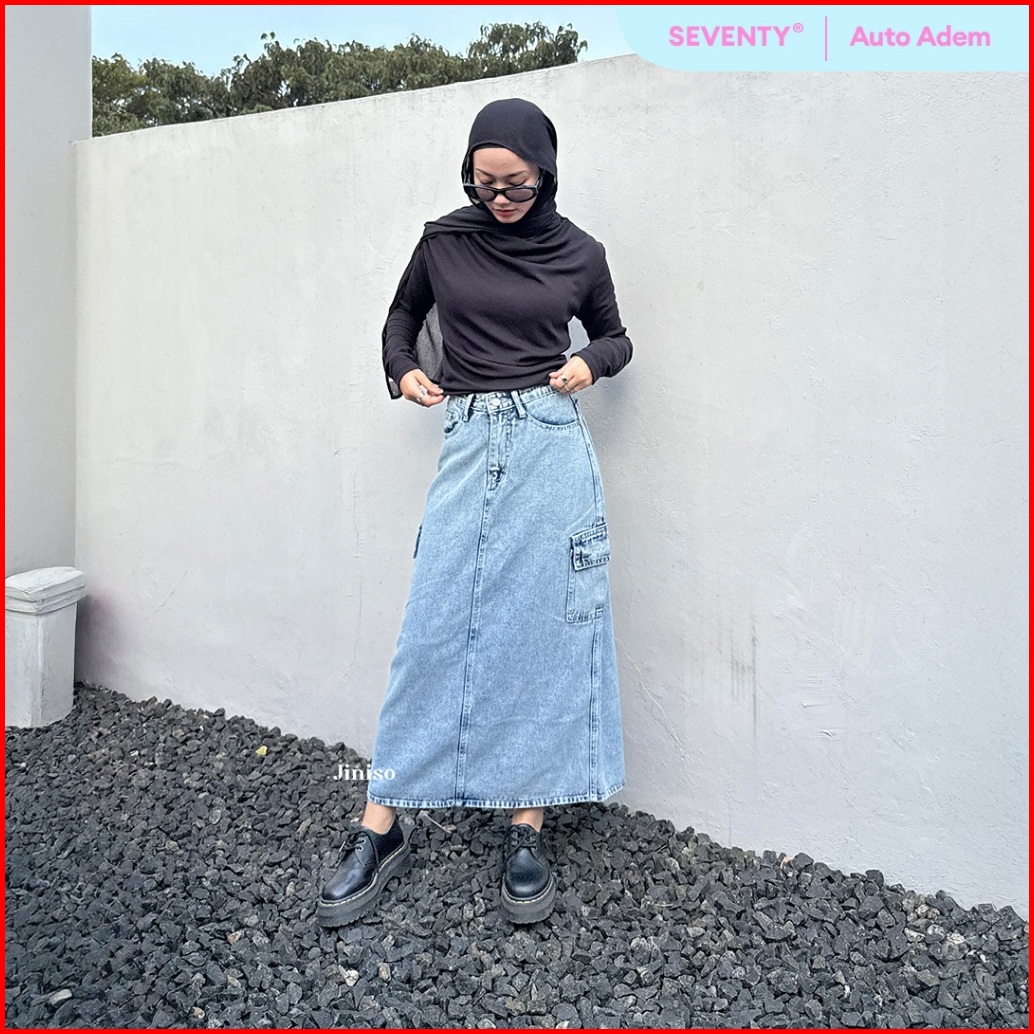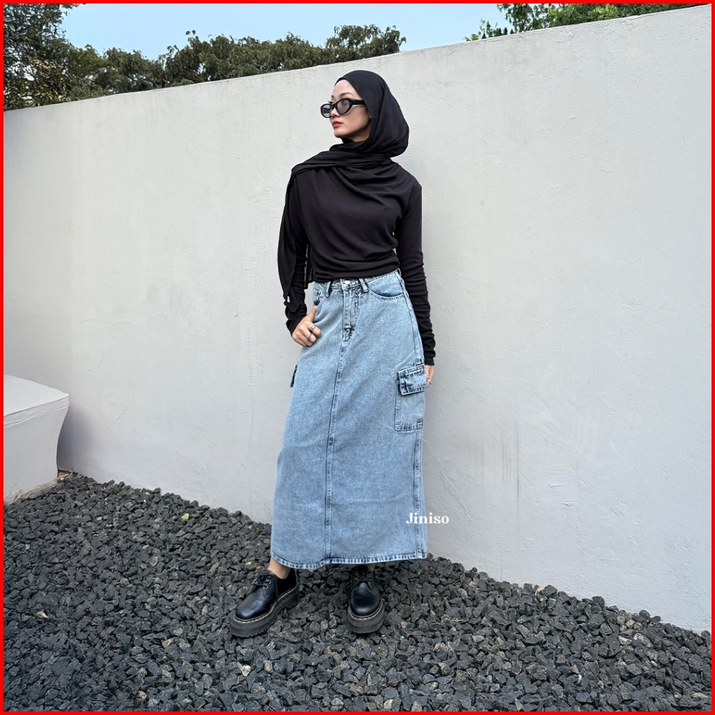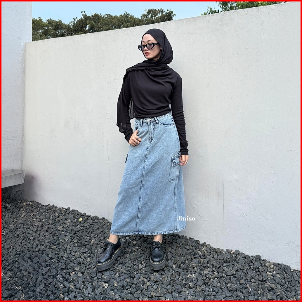 Jiniso - Highwaist Rok Cargo Jeans Panjang 983 Seventy