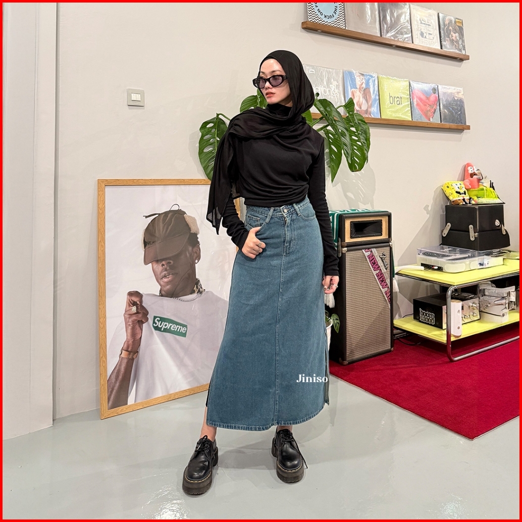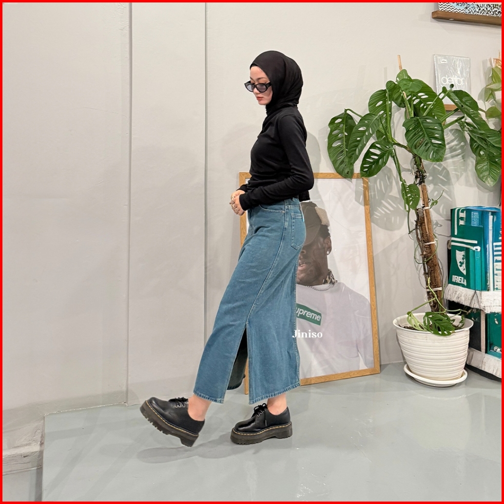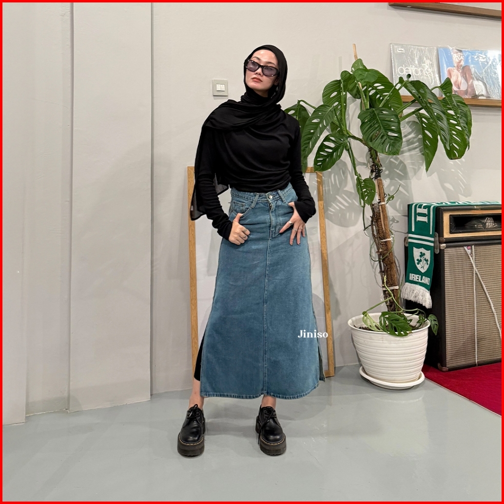 Jiniso - Highwaist Rok Slit Jeans Panjang 992 Seventy