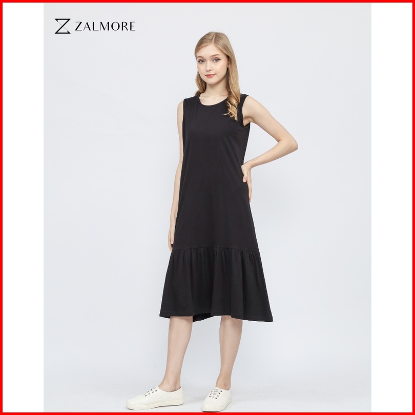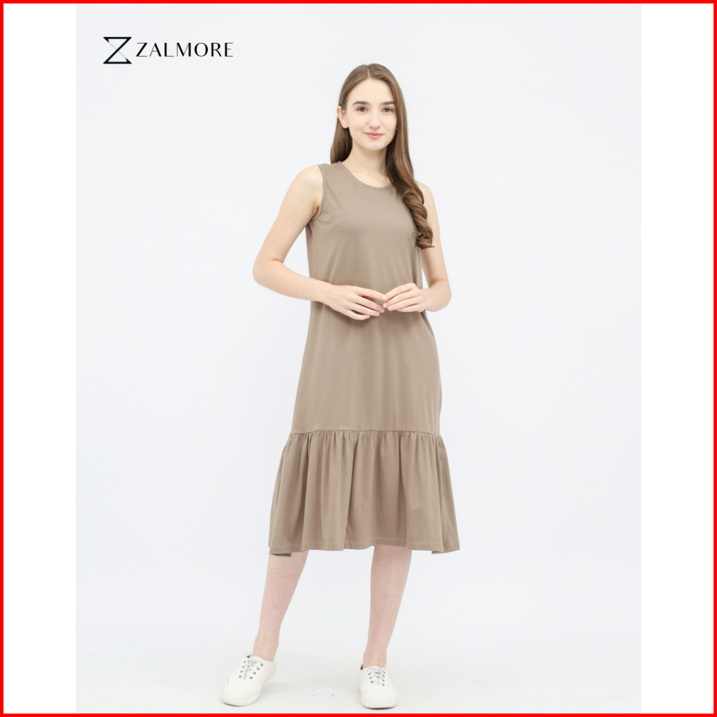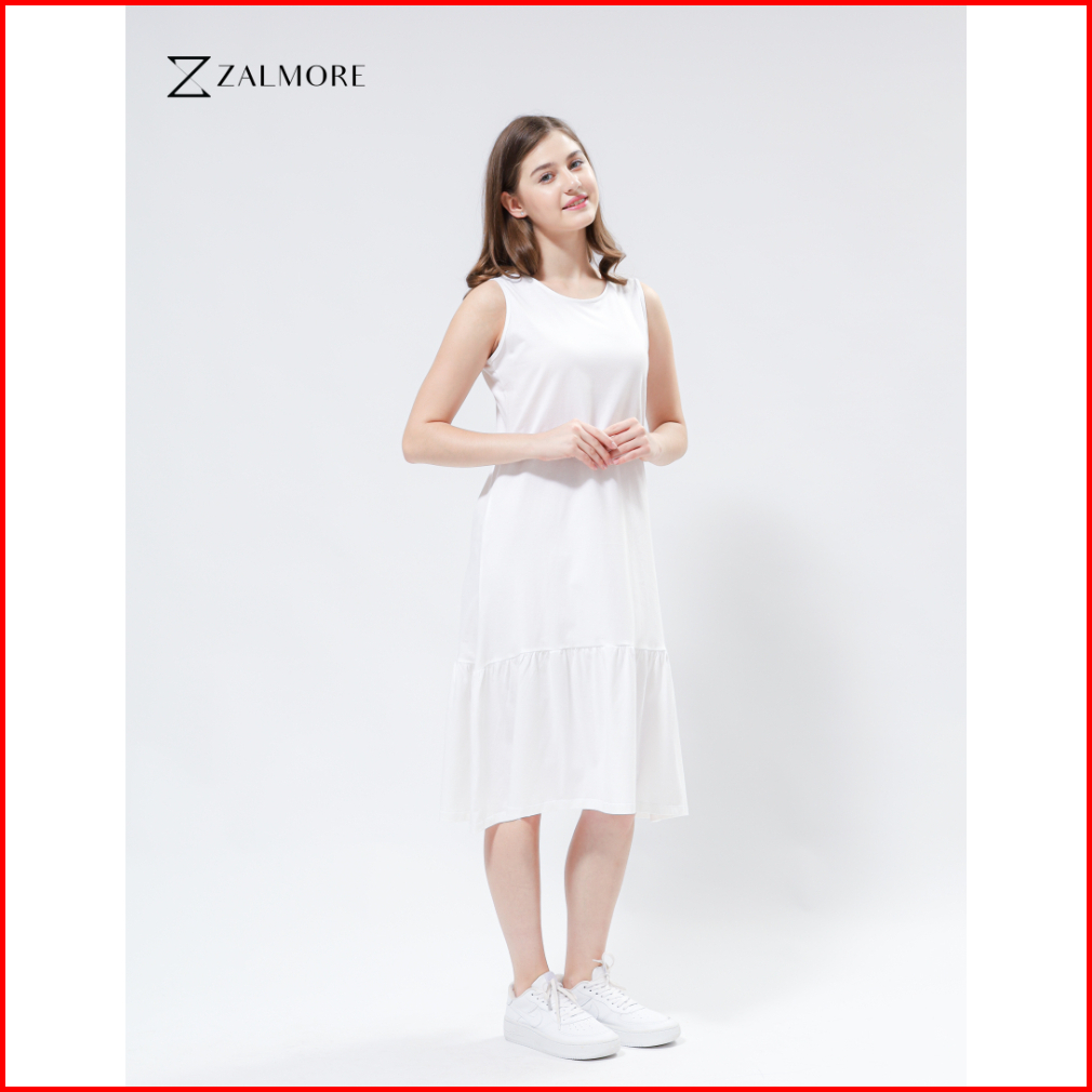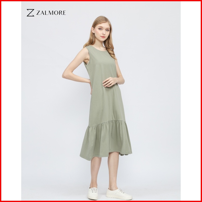 Zalmore Luma Cotton Sleeveless Midi Dress With Ruffle Premium Cotton