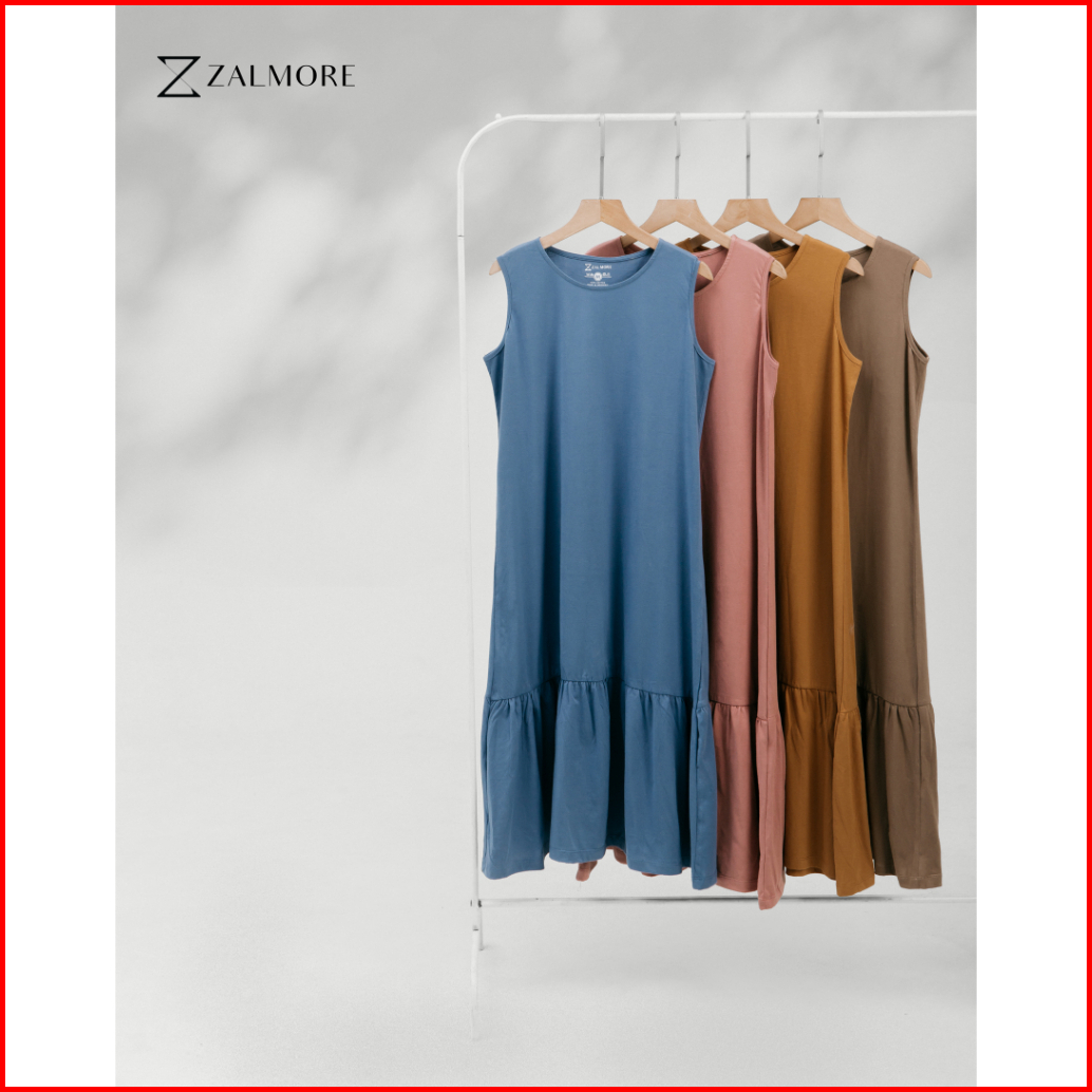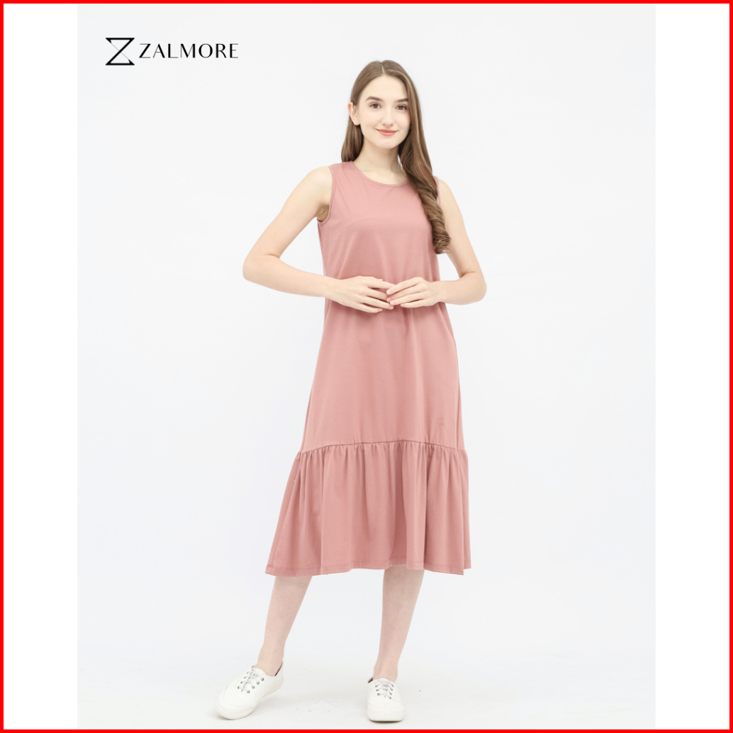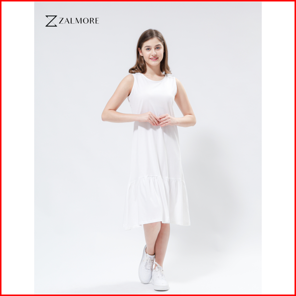 Zalmore Luma Cotton Sleeveless Midi Dress With Ruffle Premium Cotton
