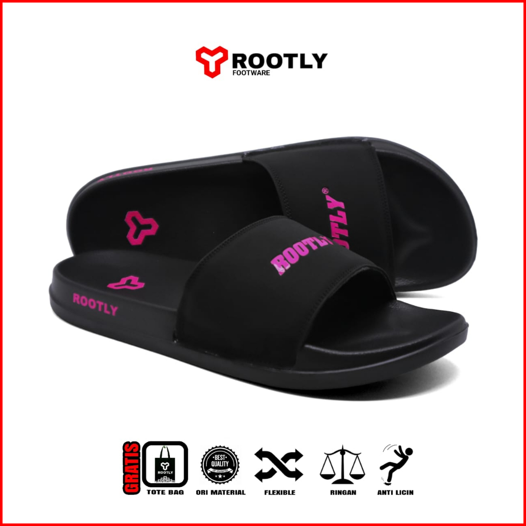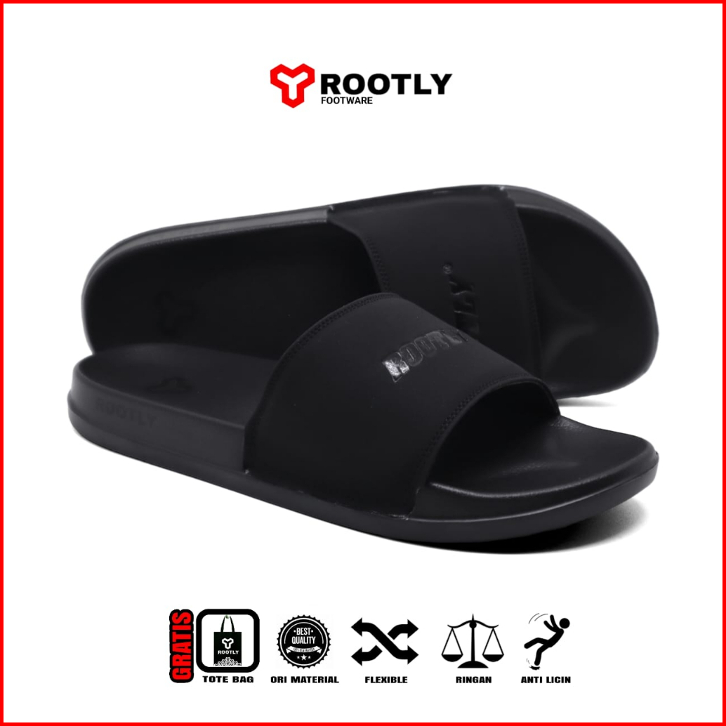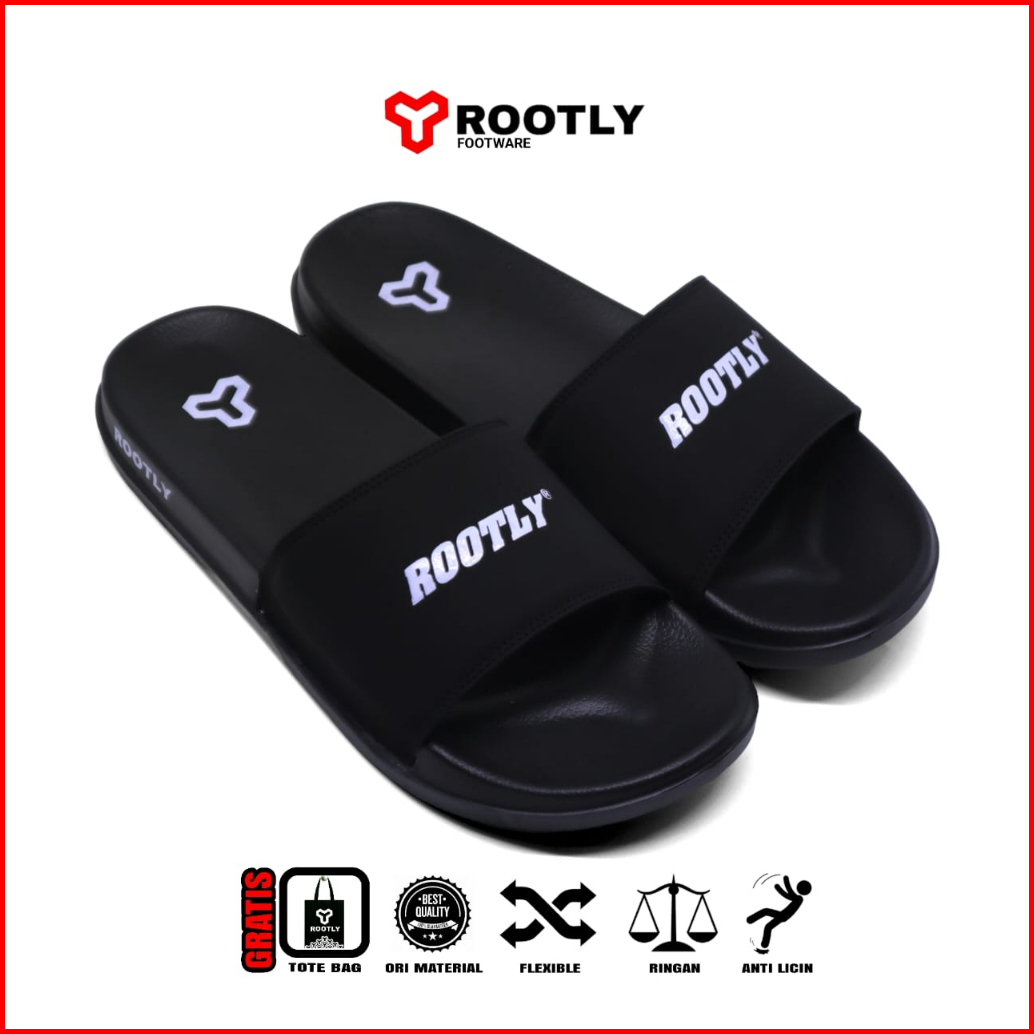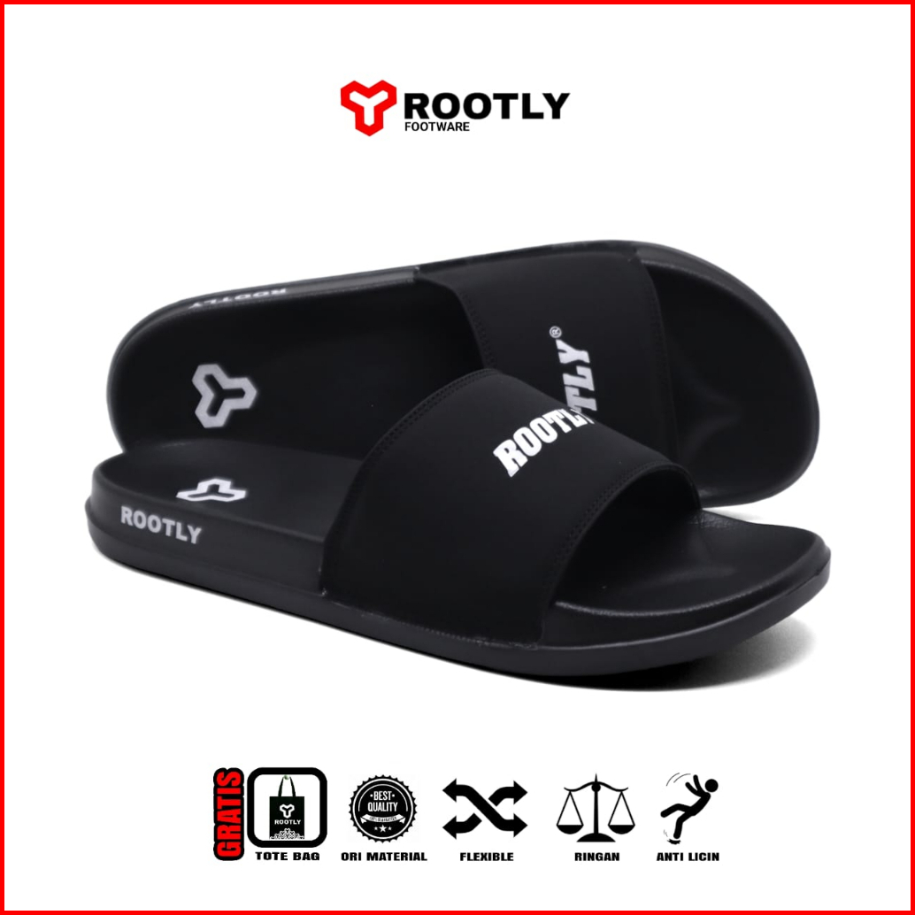 Rootly - Sandal Slipper Pria Simple Black White Terlaris