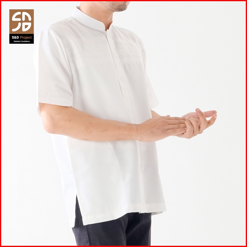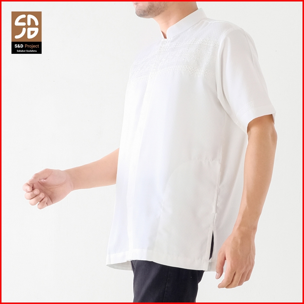 S D Project Baju Koko Polikatun Bordir Lengan Pendek S M L Xl 2xl 3xl 4xl - Seri 27 Putih Tulang