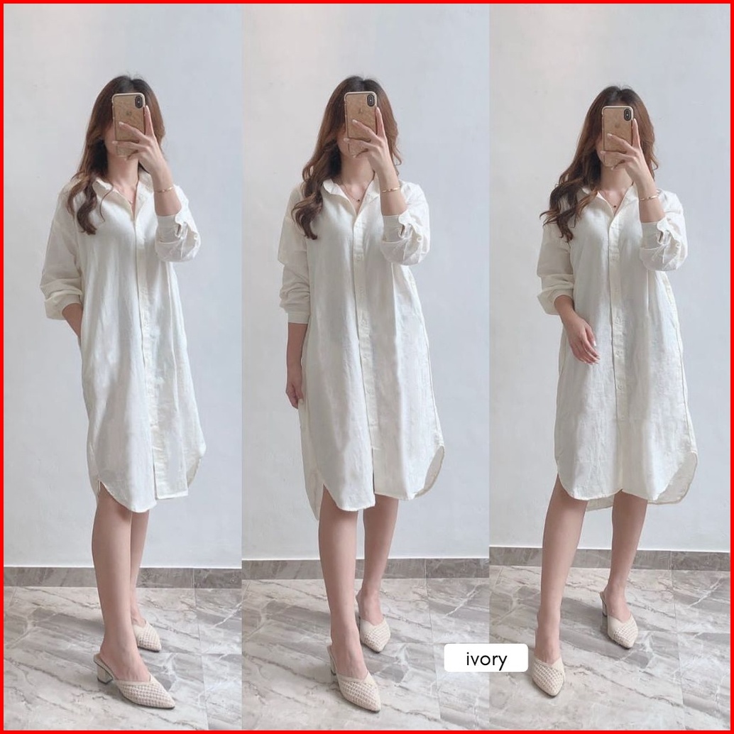 Wear Cameo Samantha Linen Dress - Shirtdress Linen Casual Wanita Soft Panjang