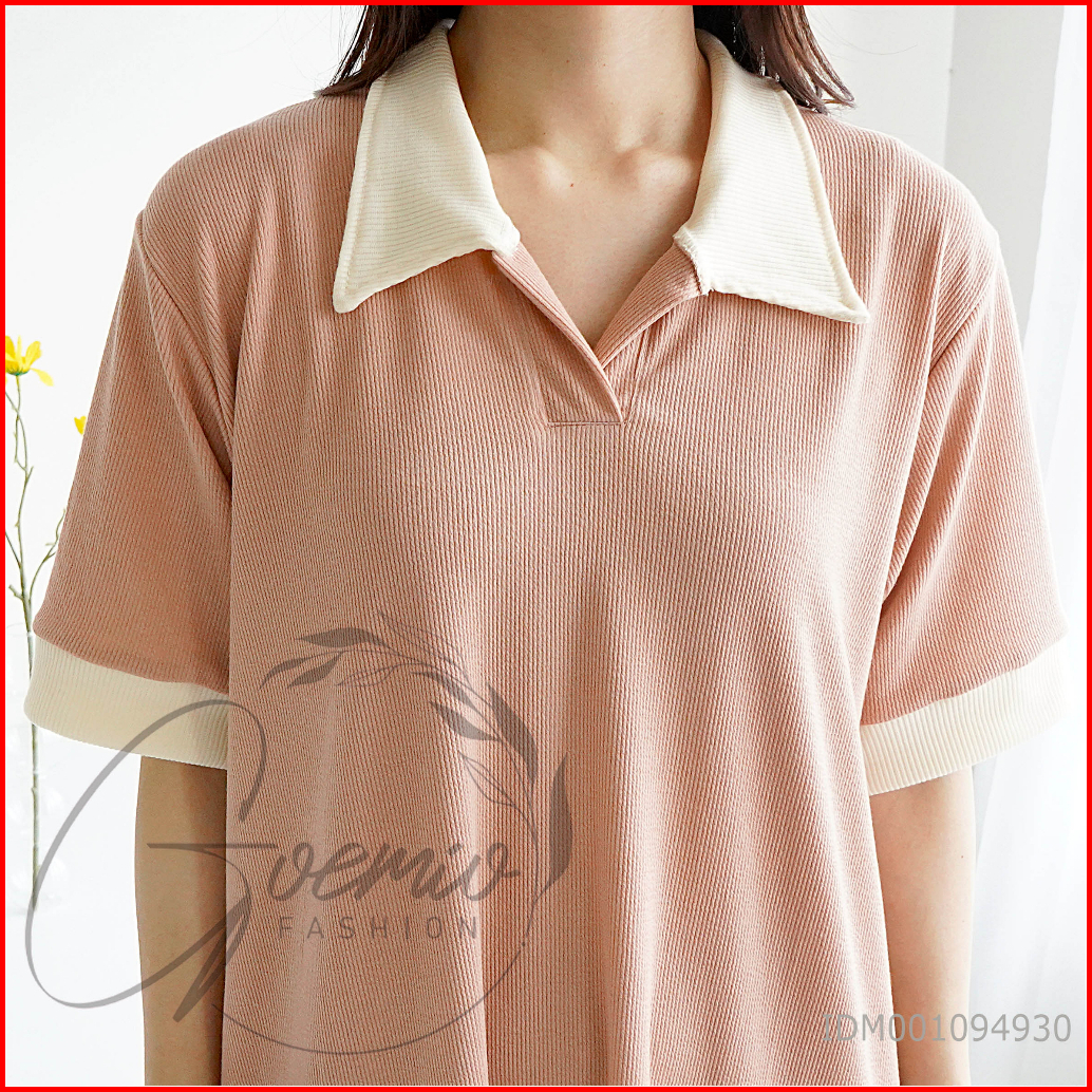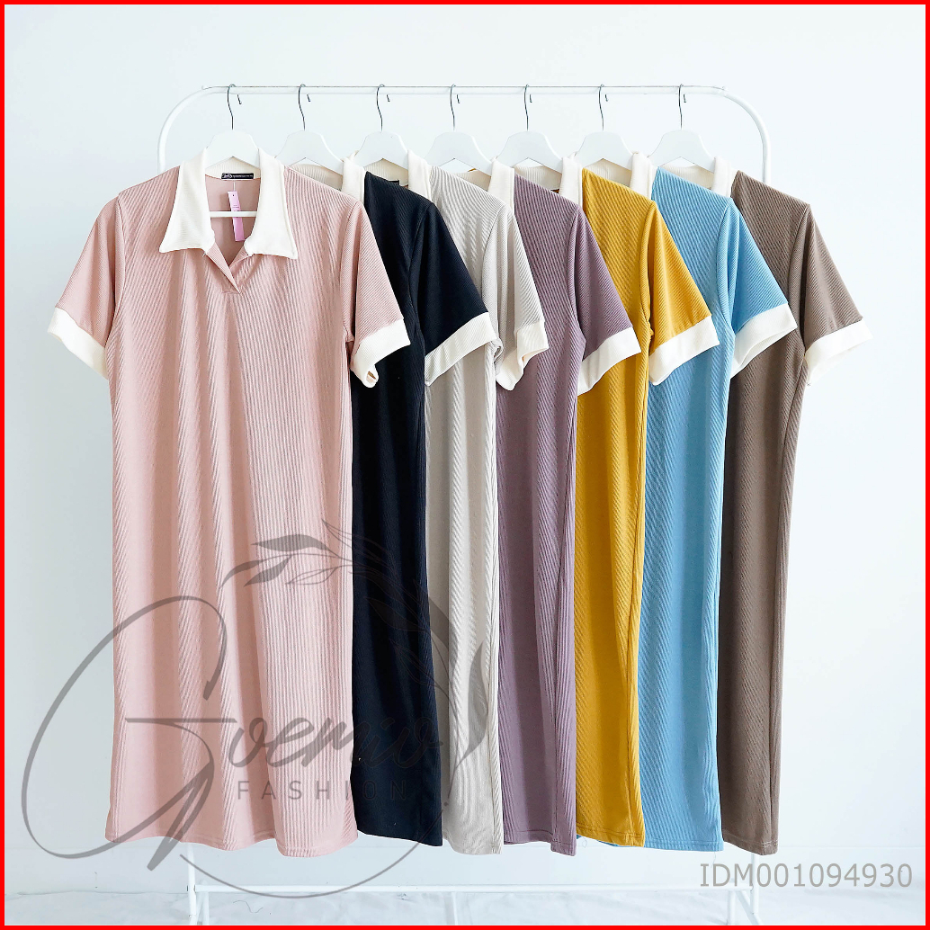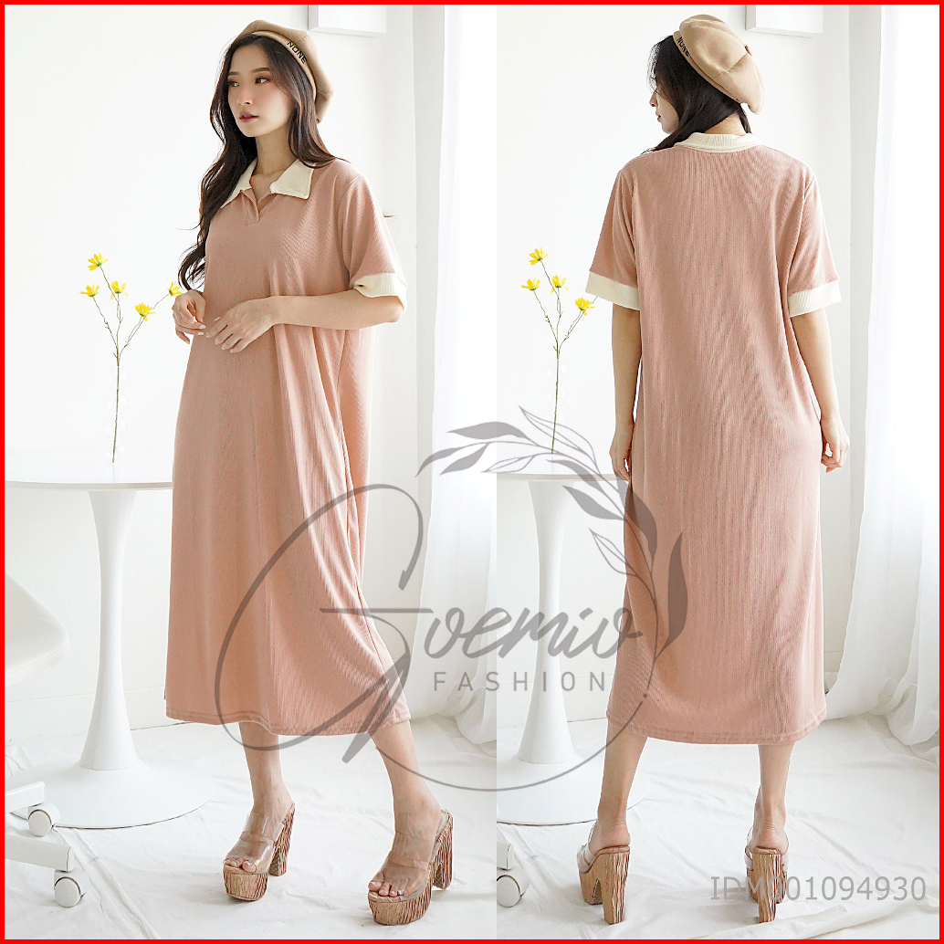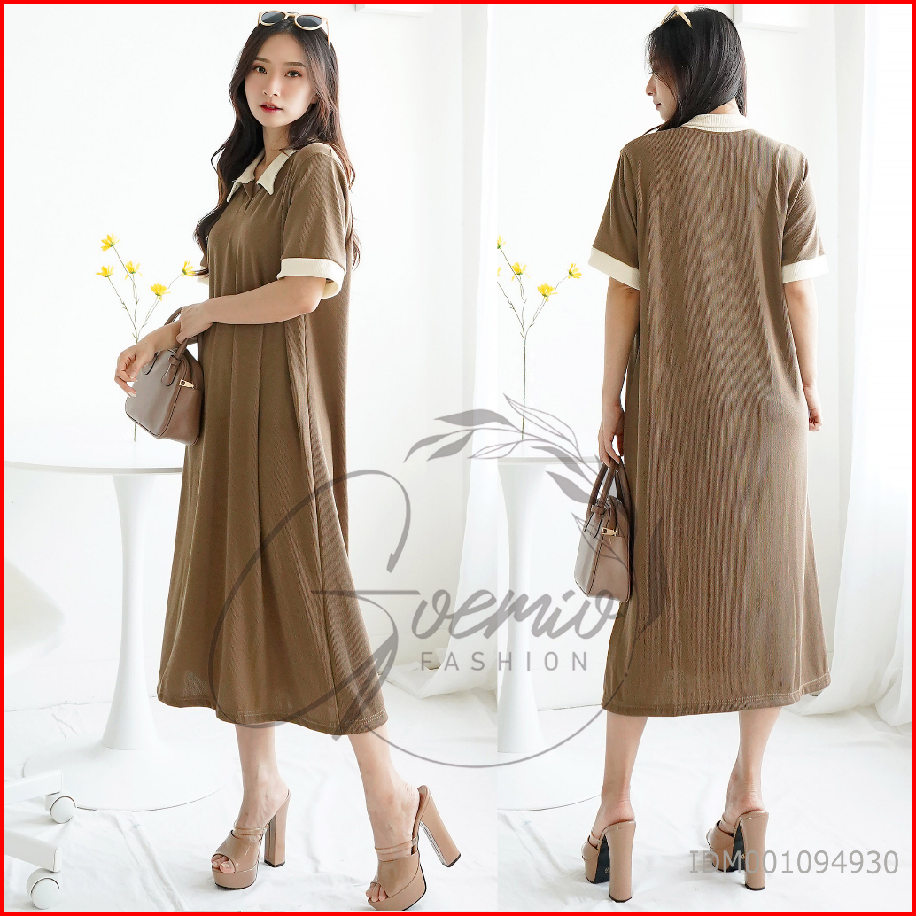 Ilook Clara Daily Dress Wanita Korean Style Kaual Katun Knit V-neck Polos