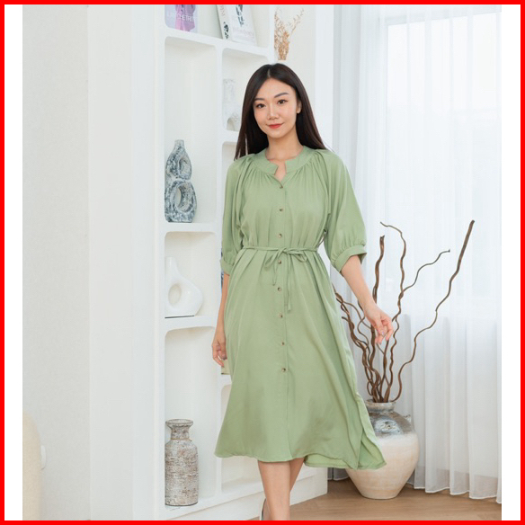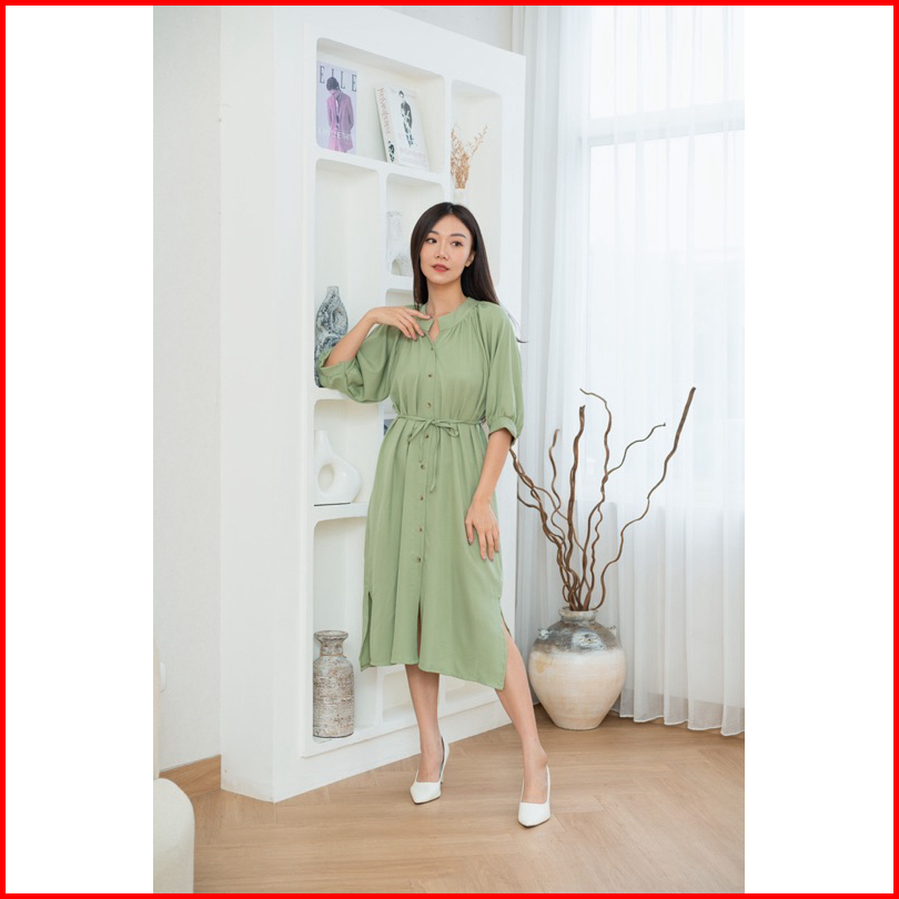 Cottonbells Dress Premium Luvena Button Slit Plaid Maxi Cv - D 4500