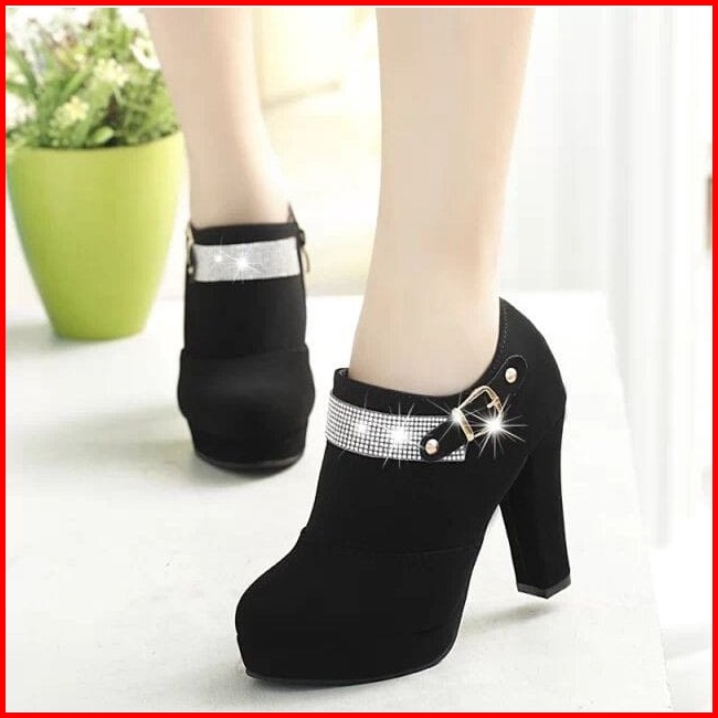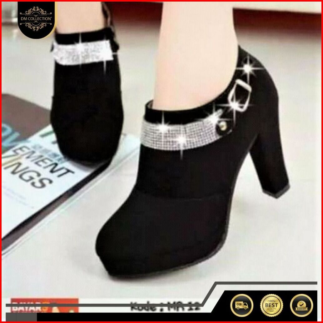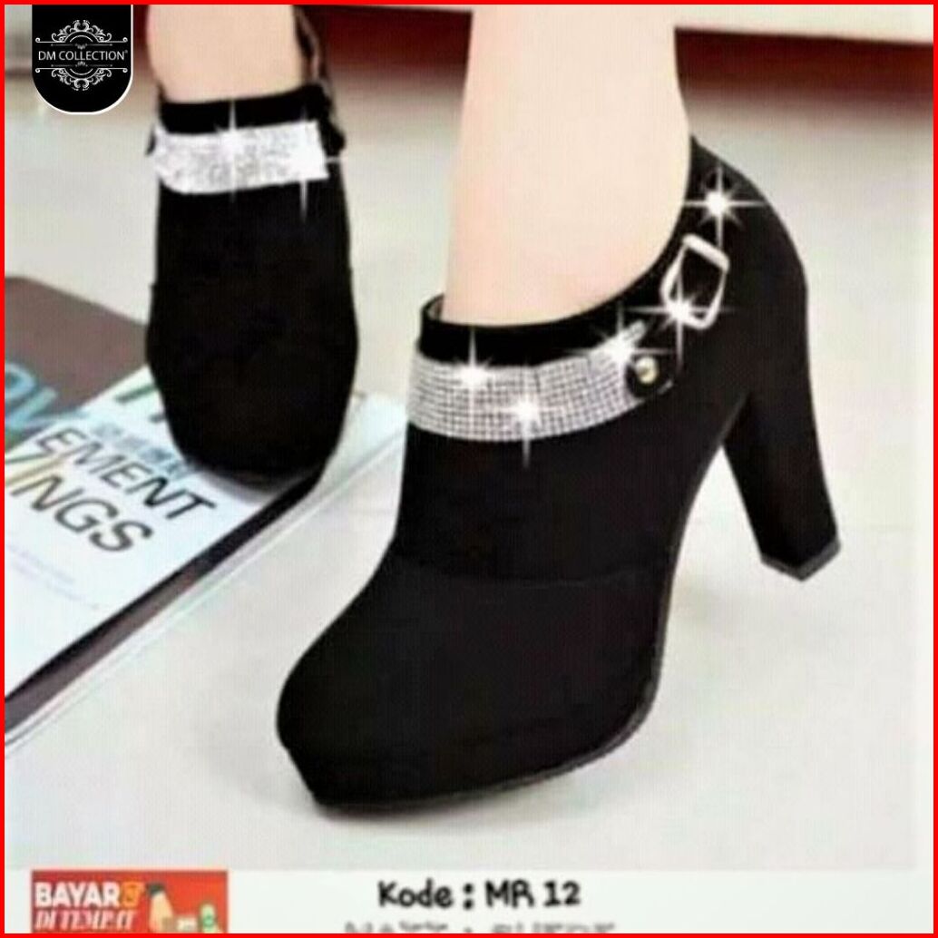 Dm-shopp Sandal Heels Wanita Model Semi Boots Suede Lembut Kombinasi Manik Mr 12