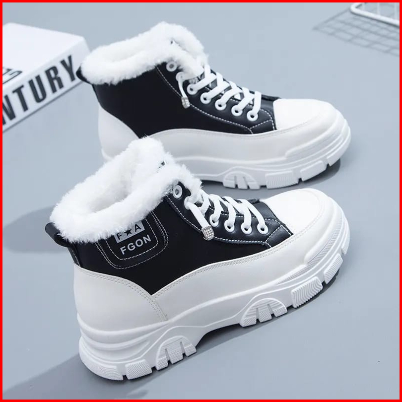 Sepatu Boots Wanita Korea Sneakers Kulit Berbulu Hangat A-young