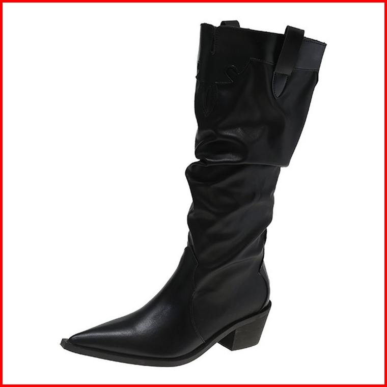 Pinkey P227 Boots Sepatu Winter Overknee Leather Kulit Fashion Wanita Black