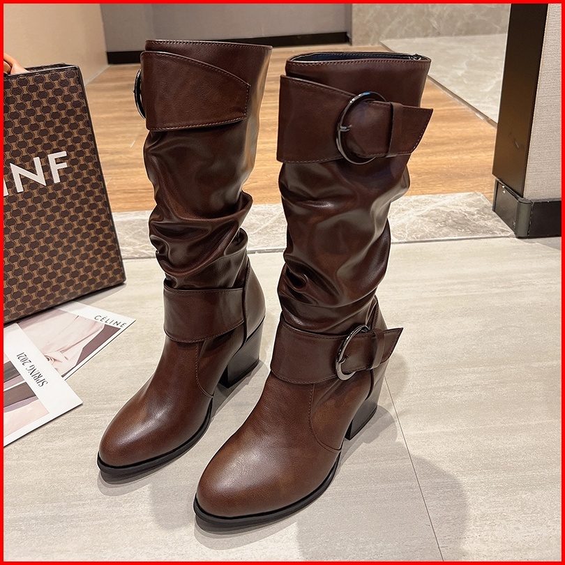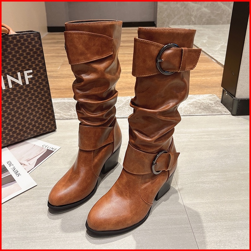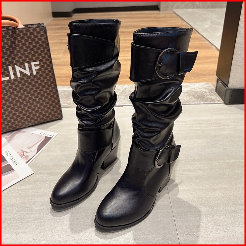 Pinkey P119 Boots Sepatu Winter Overknee Leather Kulit Fashion Wanita