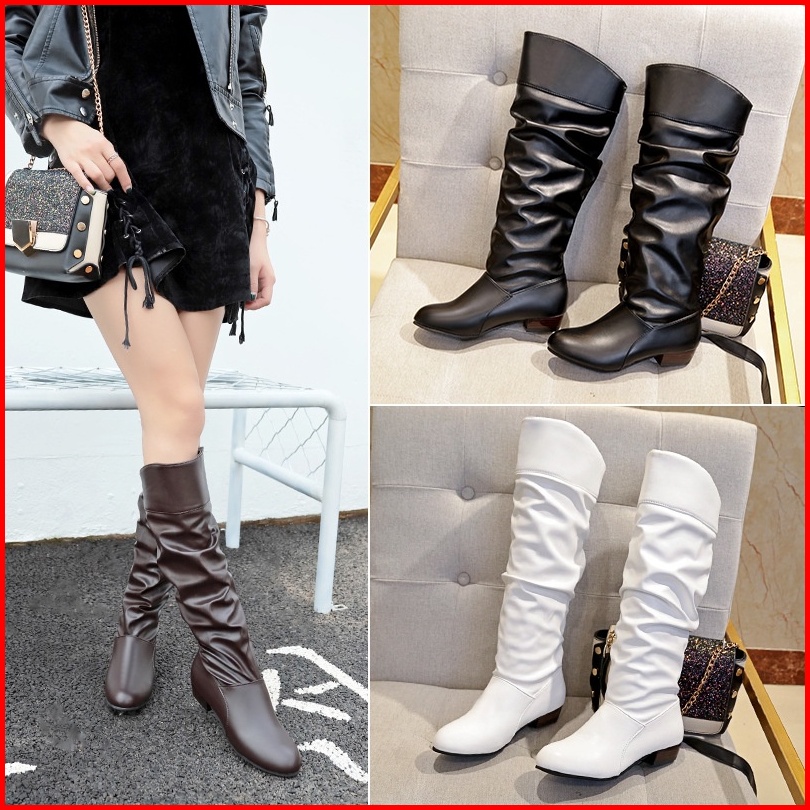 Pinkey P130 Boots Sepatu Winter Overknee Leather Kulit Fashion Wanita Black