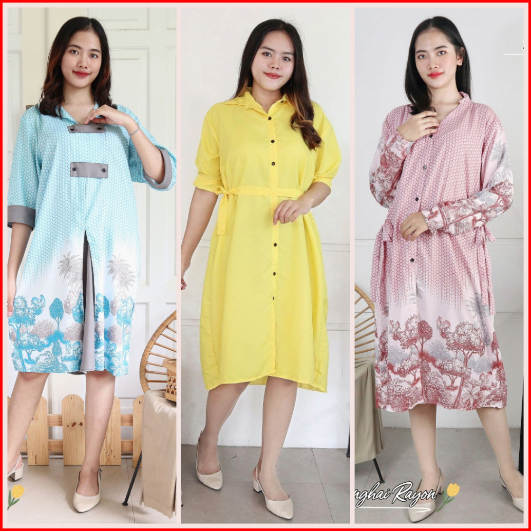 Izany Piyama Daster Dewasa Jolly Dress Jolly Kancing Plain