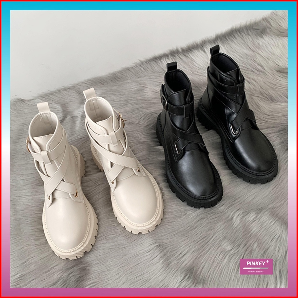 Pinkey P091 Sepatu Boots Velco Kulit Wanita Premium Quality