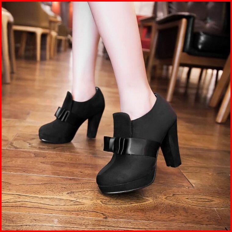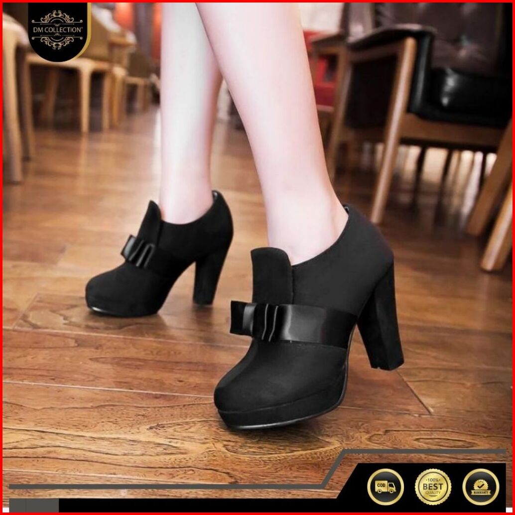 Dm-shopp Sepatu Boots Wanita Suede Lembut Hak Dalam Tali Pita Casual For Ootd Sdp 013