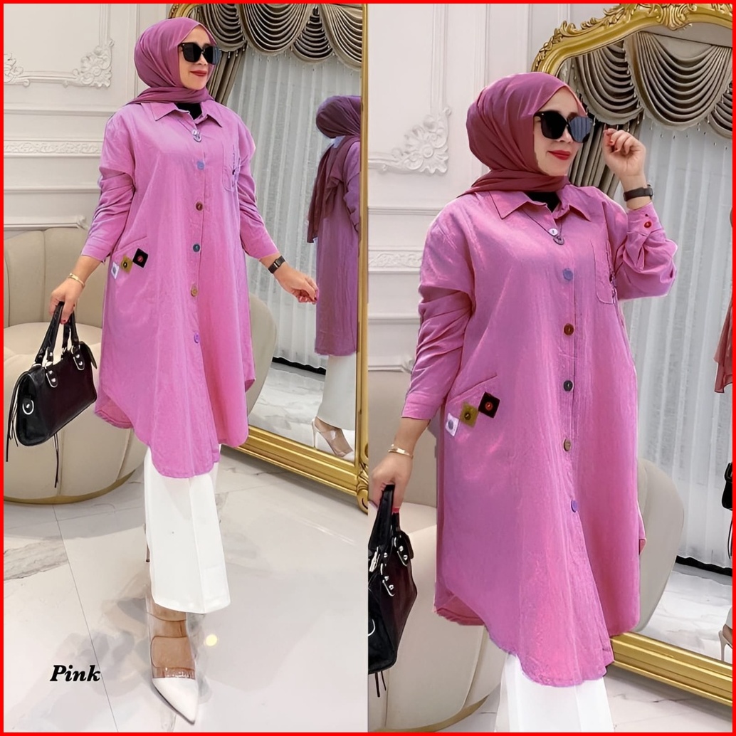 Vallina Outfit - Shella Long Tunik Muslim Wanita Atasan Blouse Panjang Crinkle Premium Fit Xl