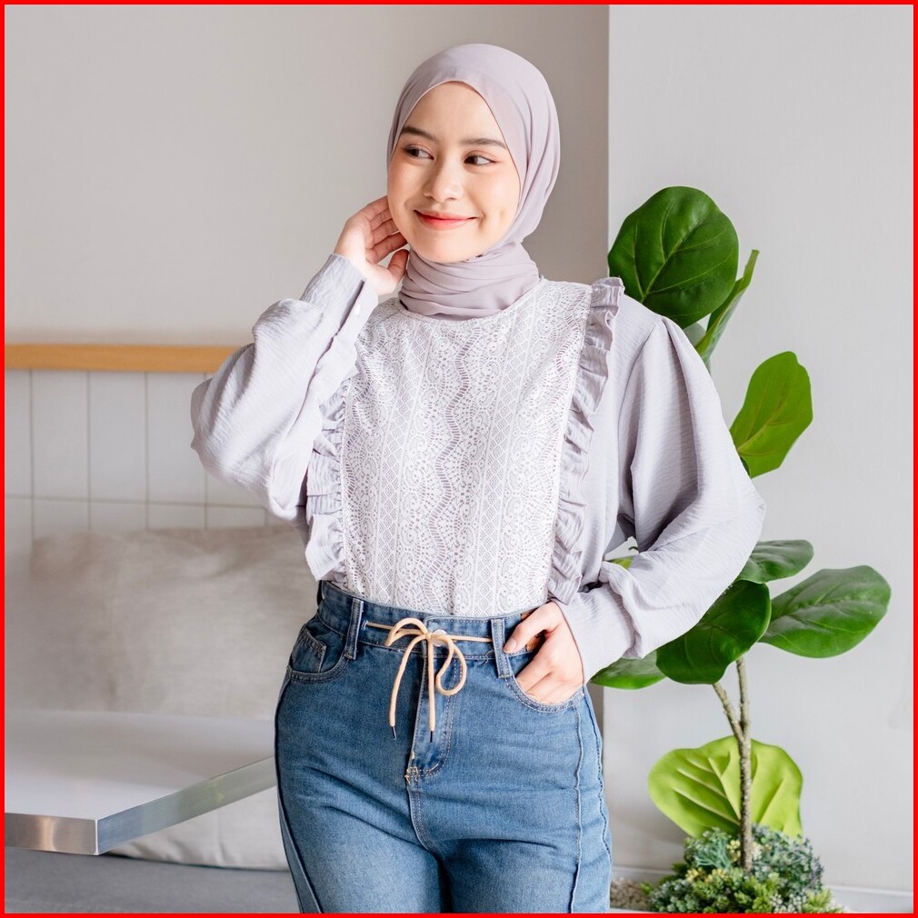 Mybamus Tiffa Tops Atasan Wanita Kekinian - Blouse Vintage Blouse Korean Style