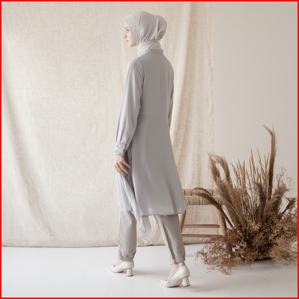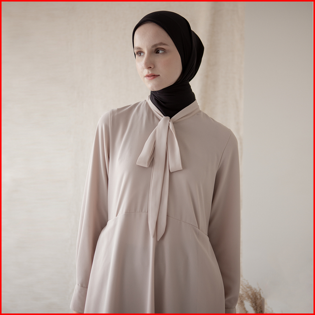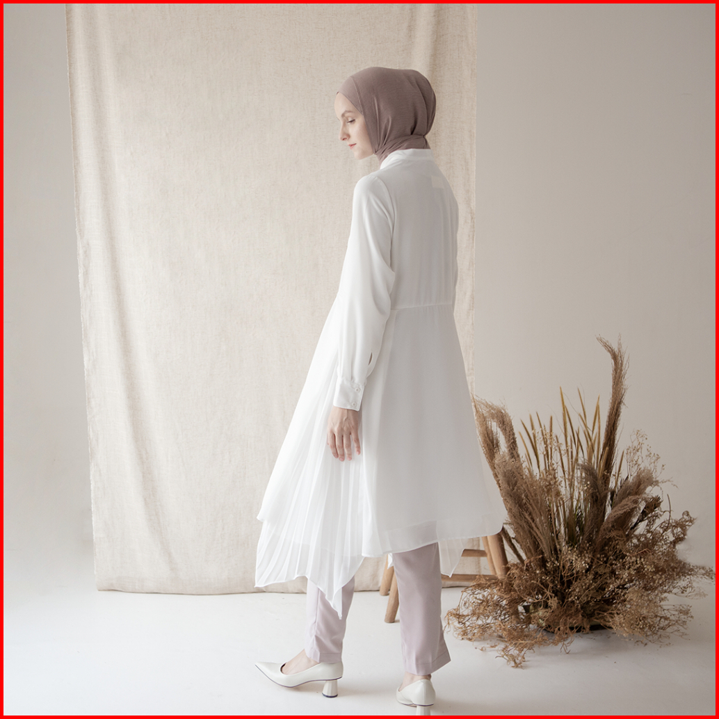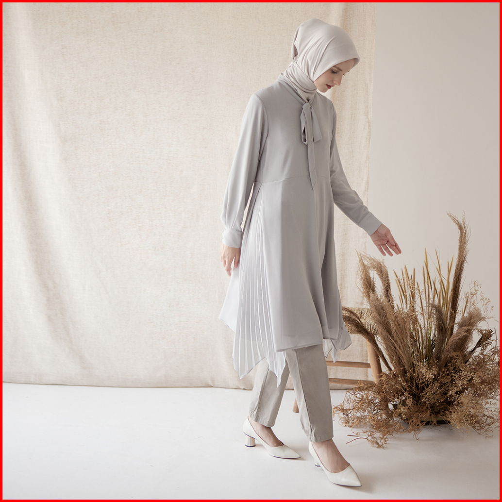 Aria By Aska Label - Tunik Wanita Plisket Atasan Blouse Wanita Aksen Pita Ikat Di Bagian Leher Dan Plisket Di Bagian Sam