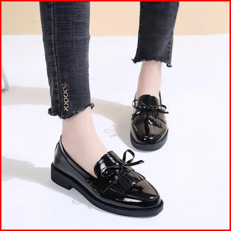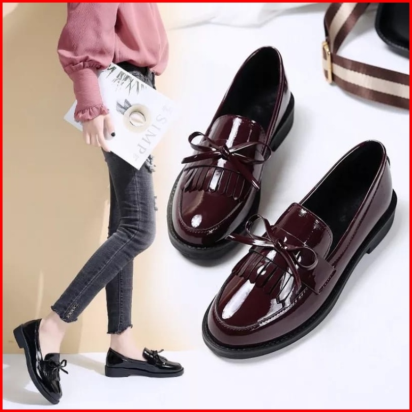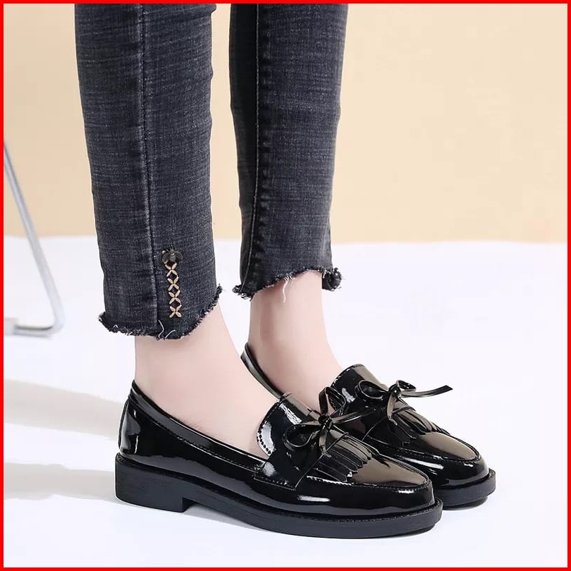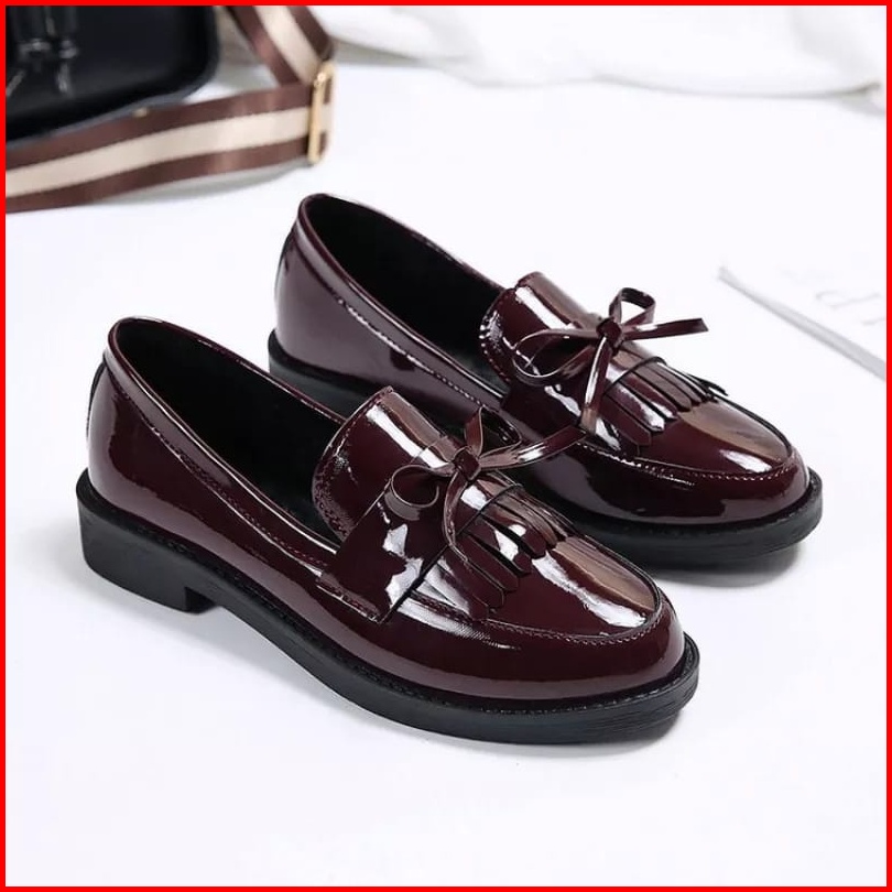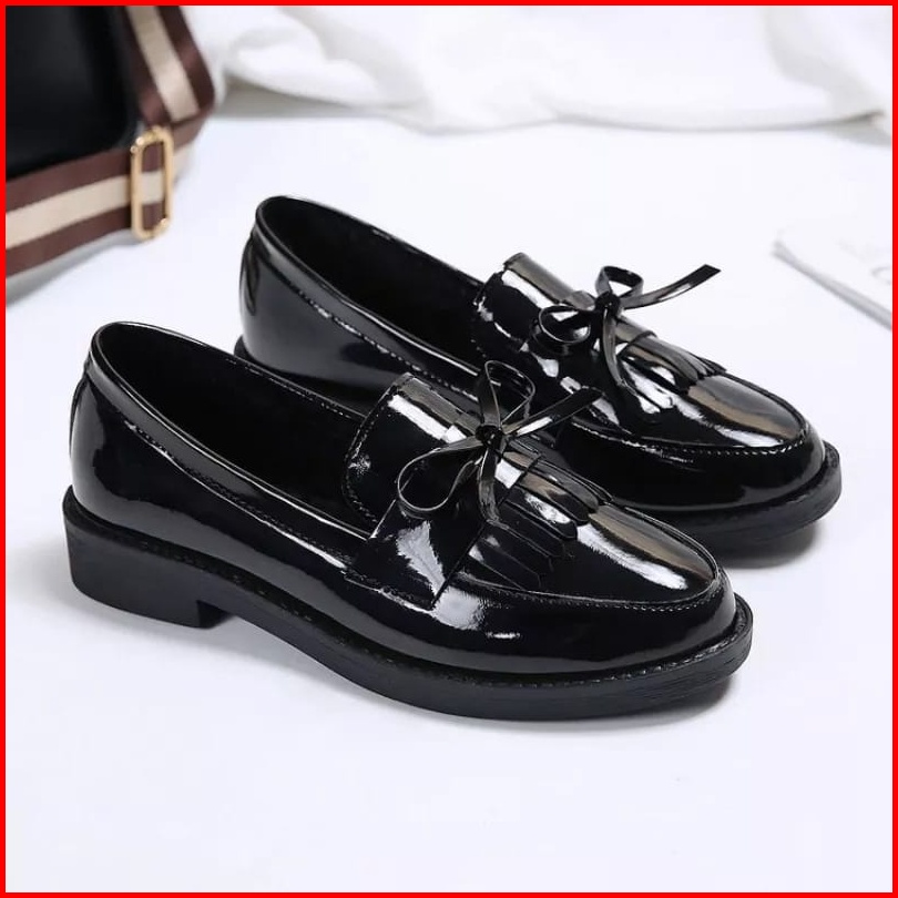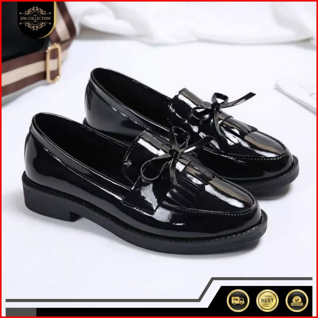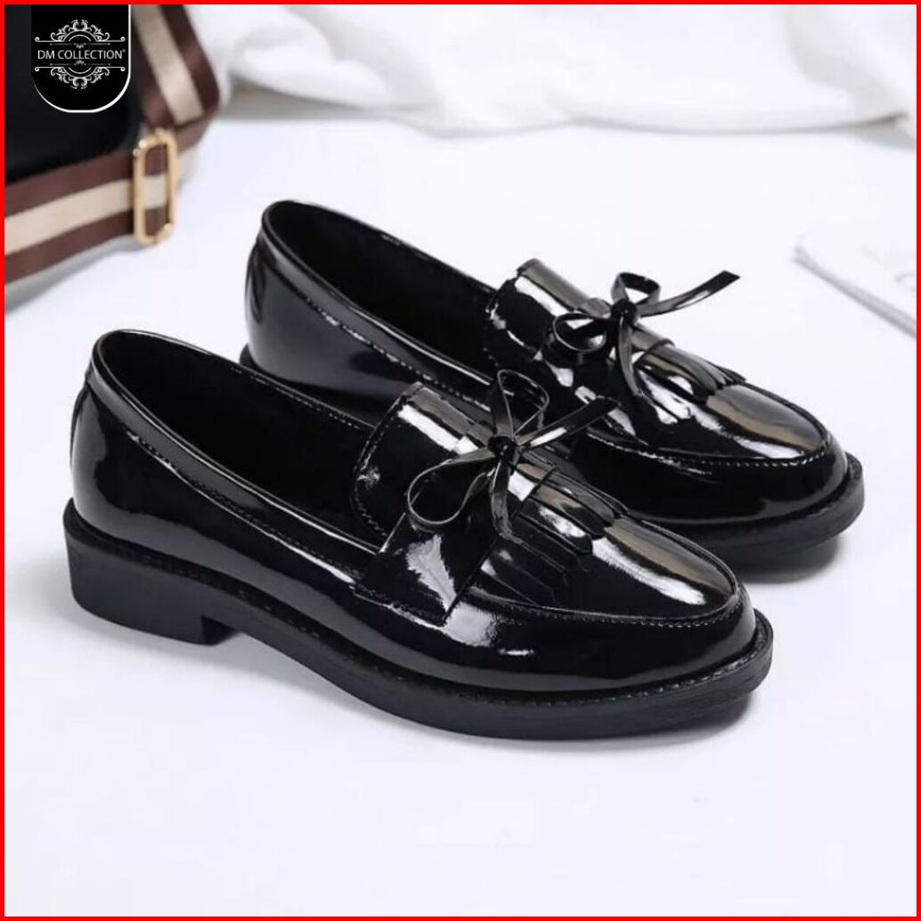 Dm-shopp Sepatu Docmart Wanita Bahan Glosy Slip On Kombinasi Rawis Size 36-40 Cocok Untuk Casual For Ootd Pk 129