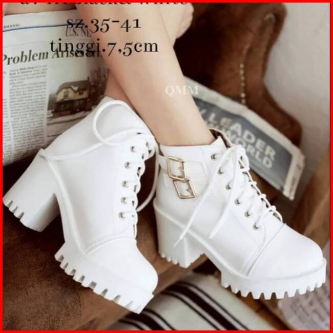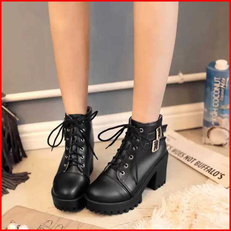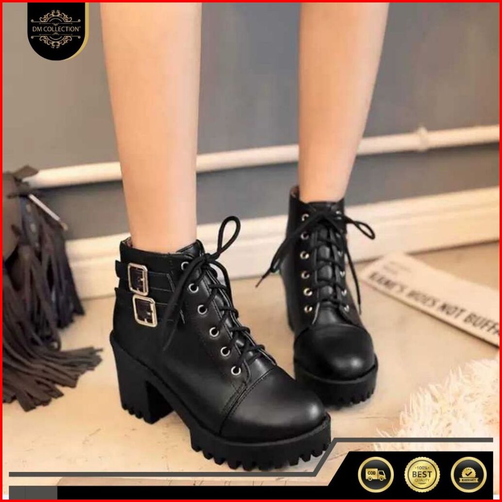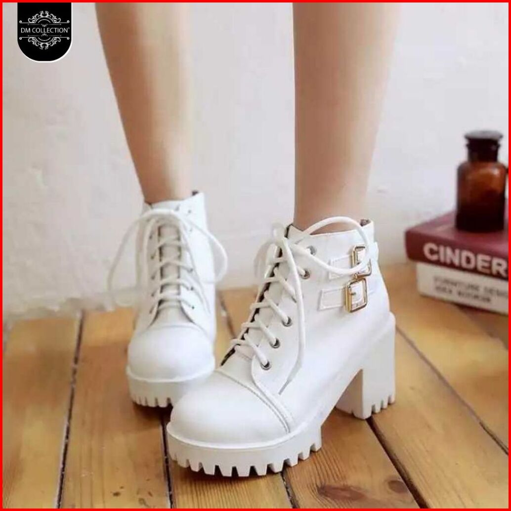 Dm Shopp - Sepatu Sneakers Boots Wanita Hak Platform Model High Top Casual Ootd Temali Bahan Sintetis Dl 550
