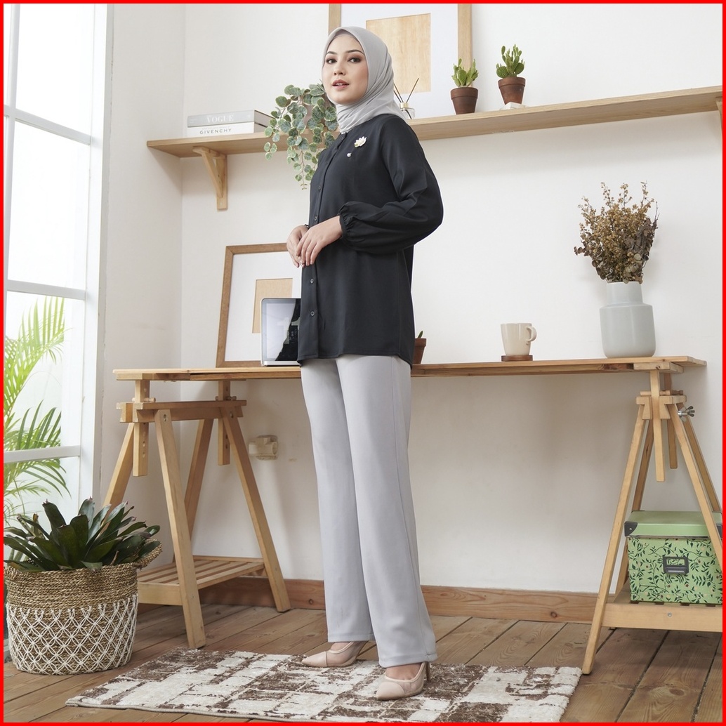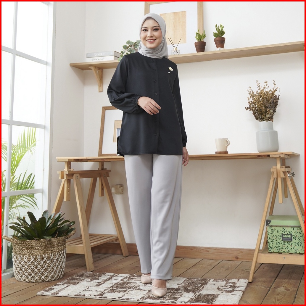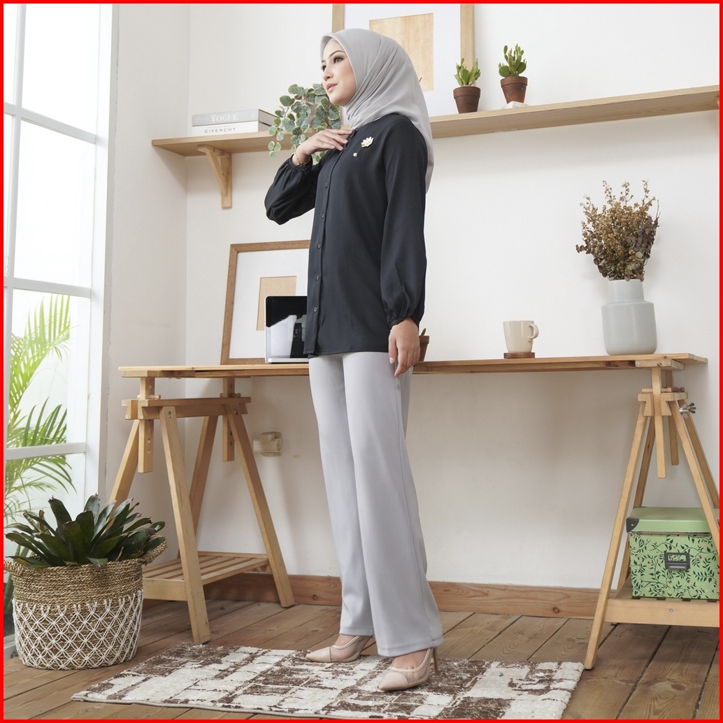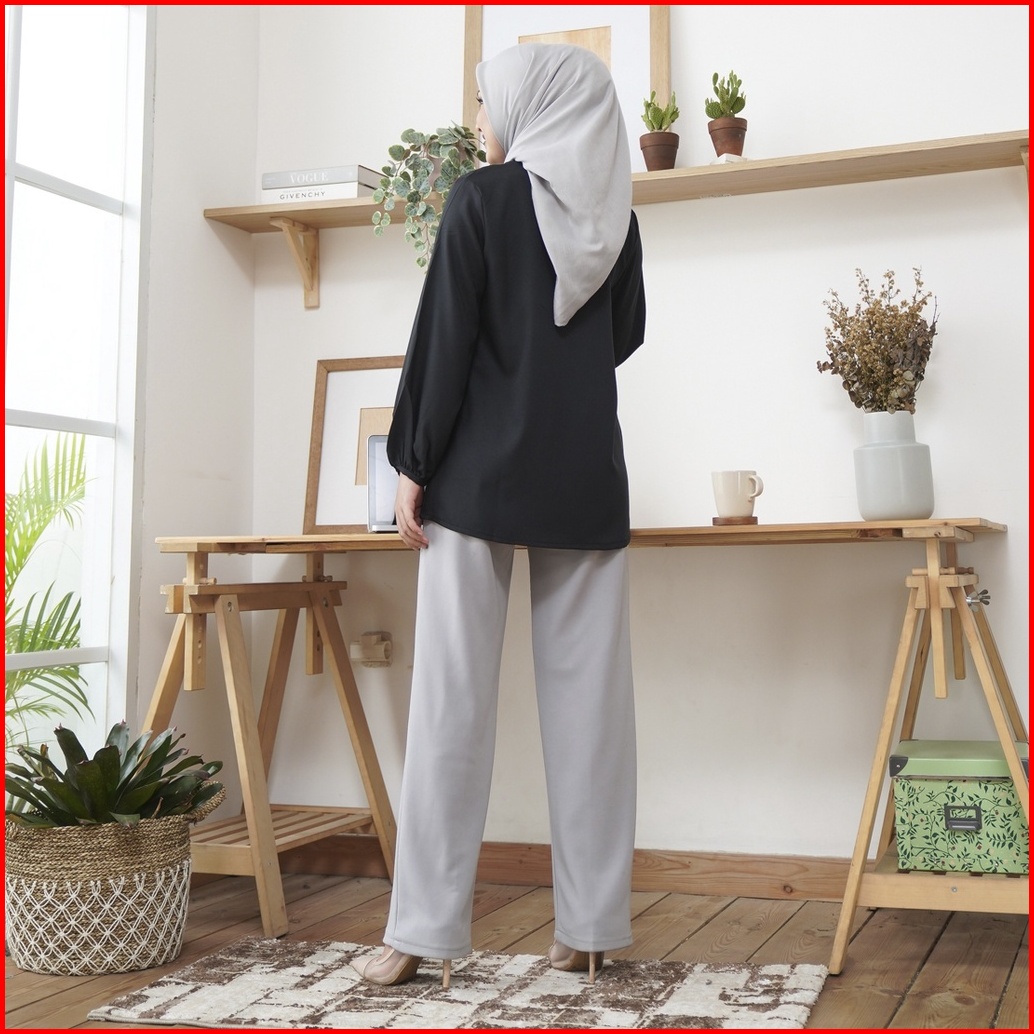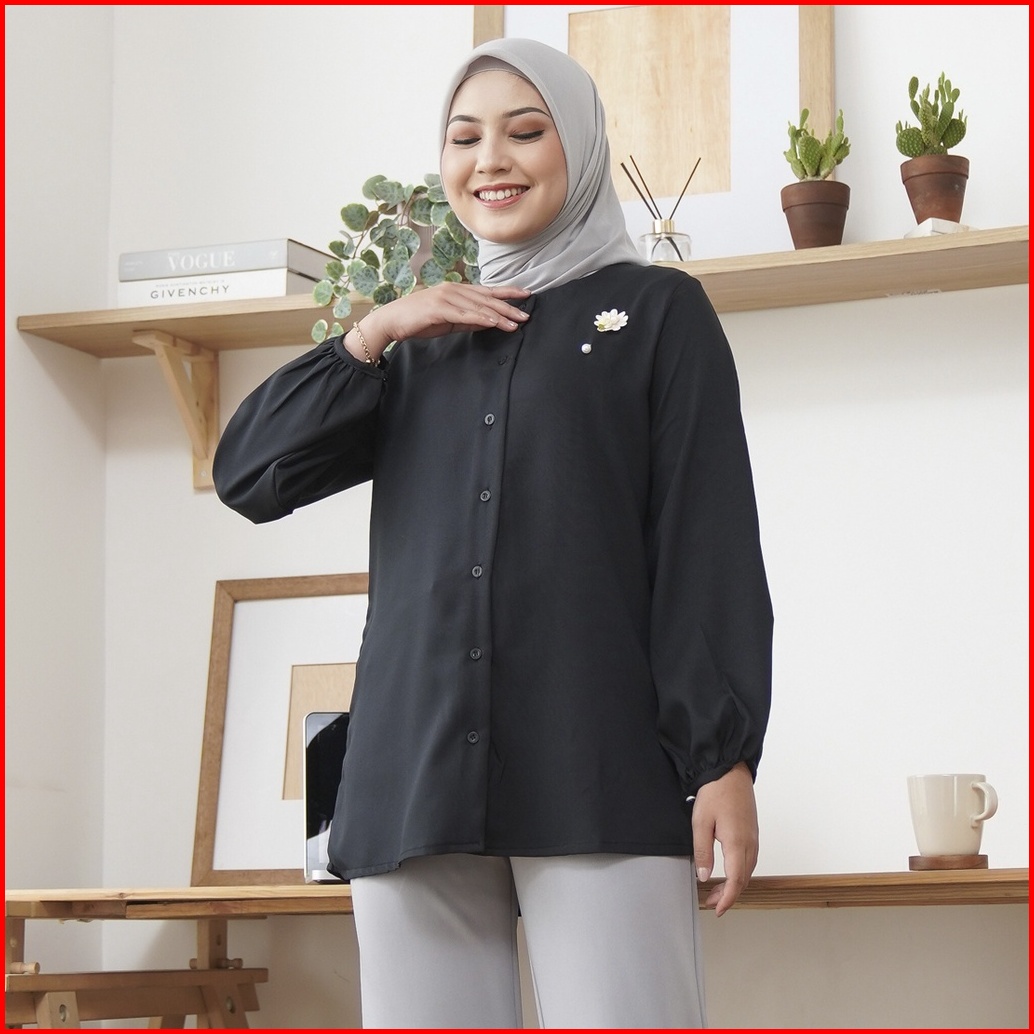 Wulfi Atasan Blouse Harian Black Free Bros Lengan Panjang Baju Muslim