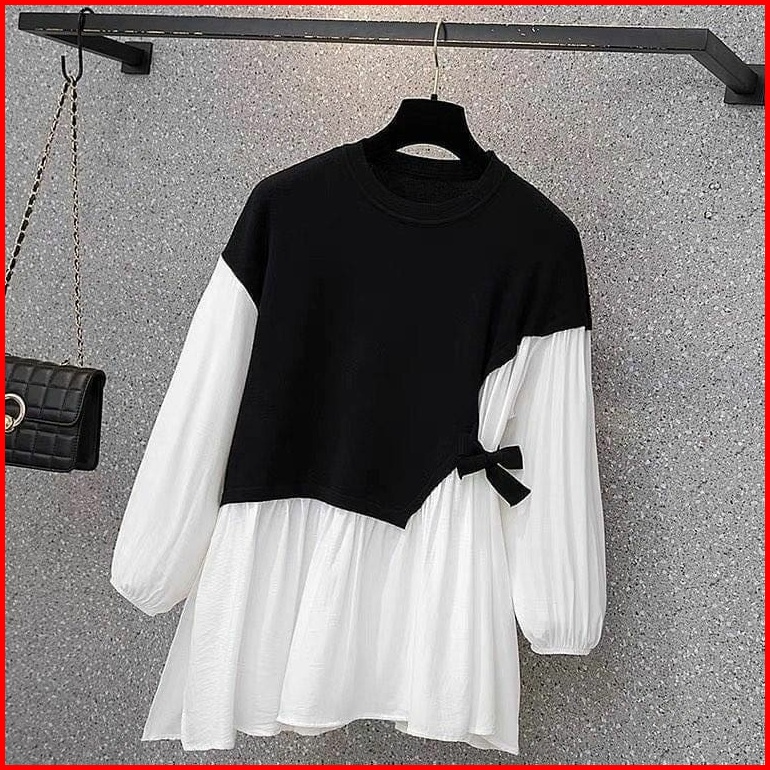 Vallina Outfit - Konina Top Blouse Two Tone Premium Atasan Sweatshirt Remaja Wanita Muslim Korean Style