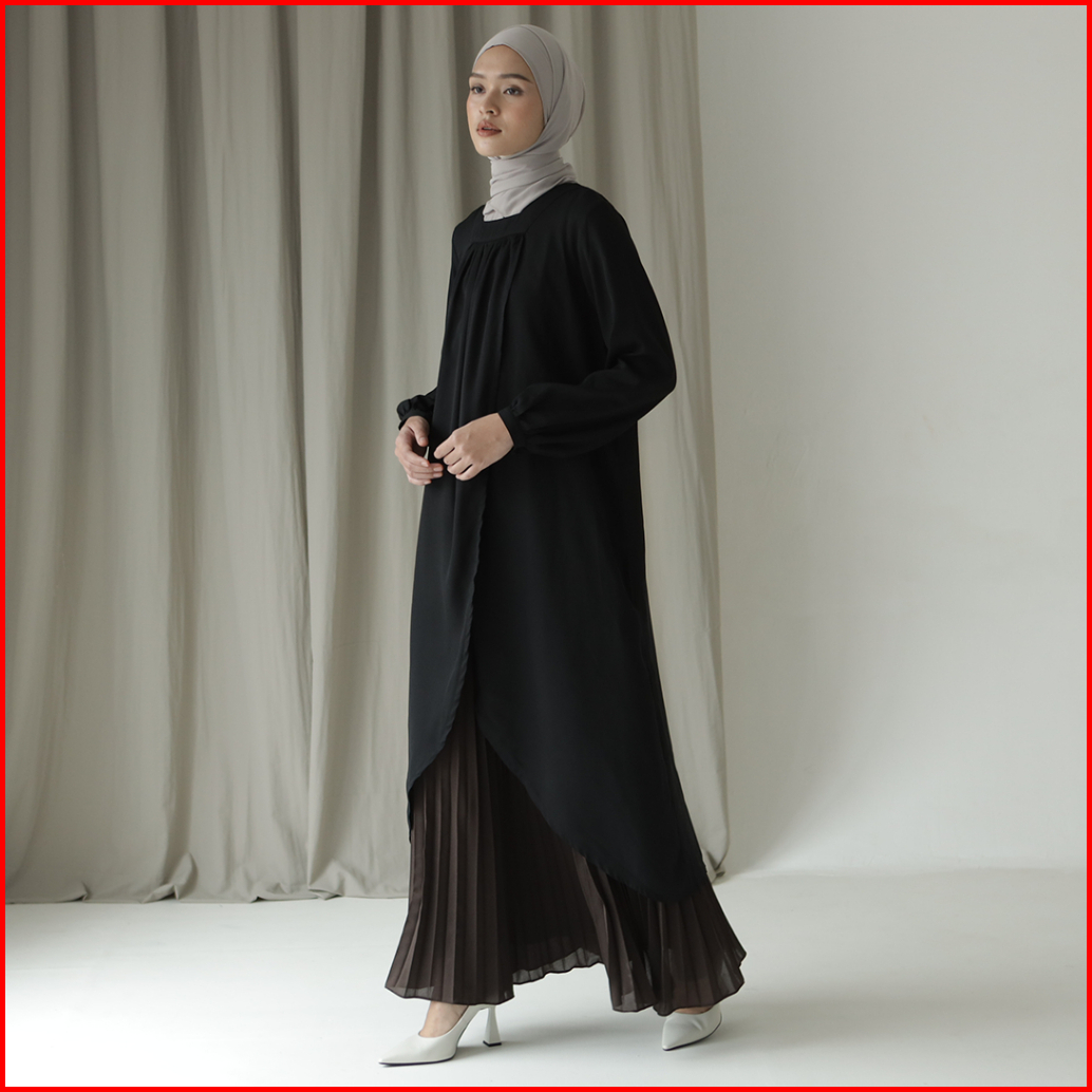 Salma By Aska Label - Tunik Wanita Panjang Dengan Hem Tulip. Atasan Blouse Wanita