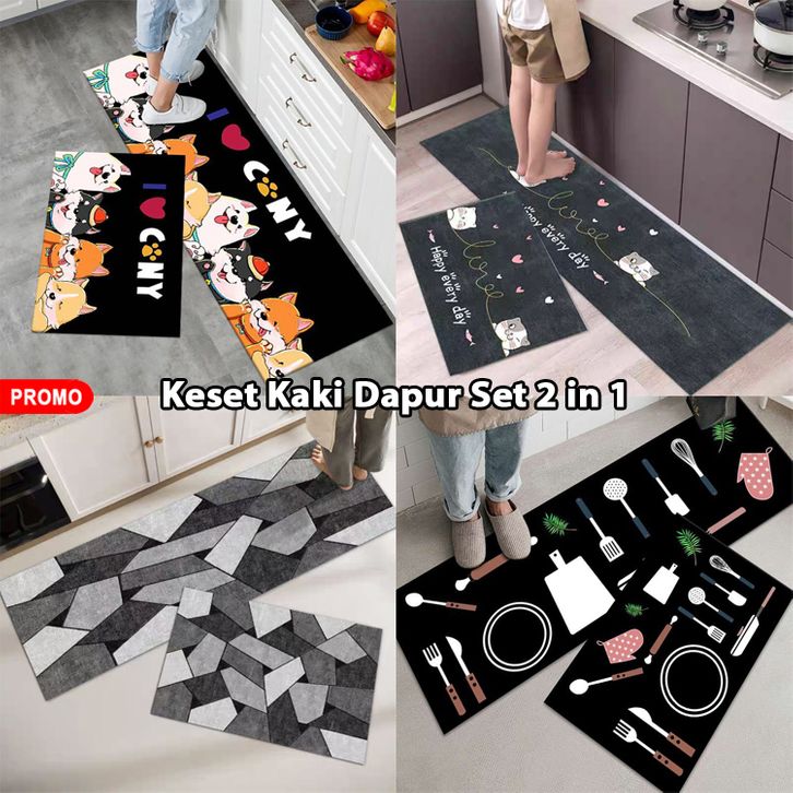 Keset Kaki Dapur Set 2 in 1 40x60 dan 40x120 Keset Alas Lantai Kamar Tidur Rumah Dapur Anti Selip UM023 (K1-K50)