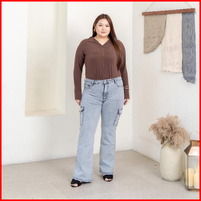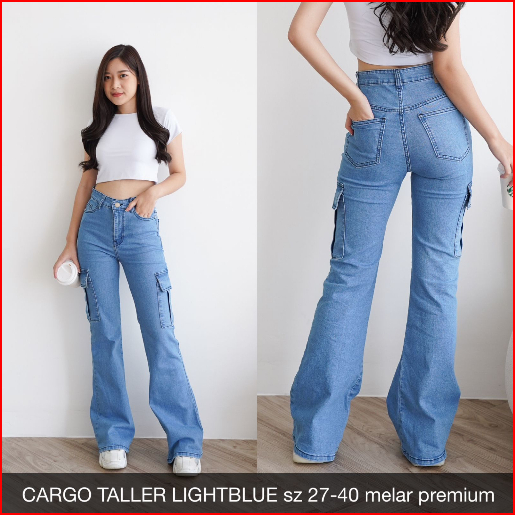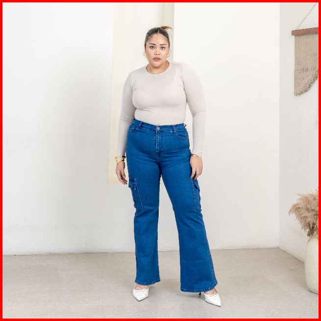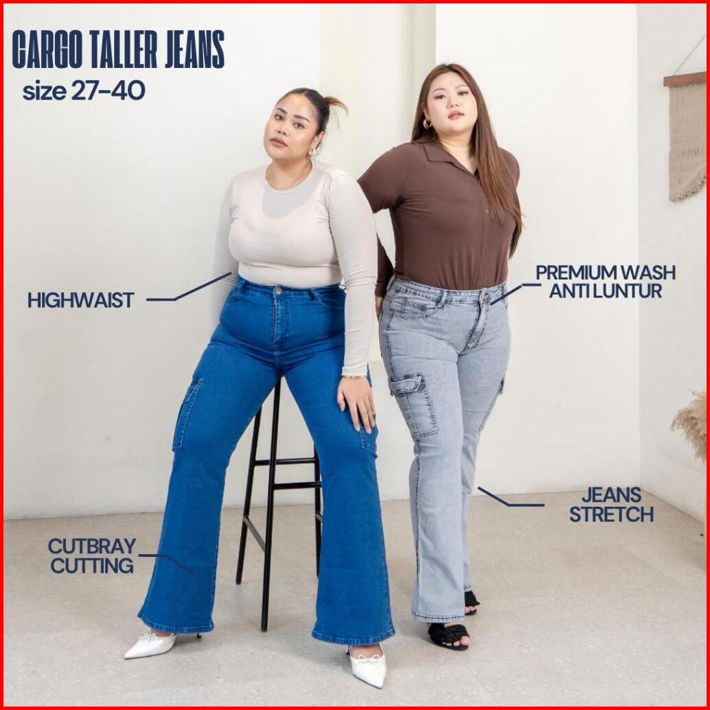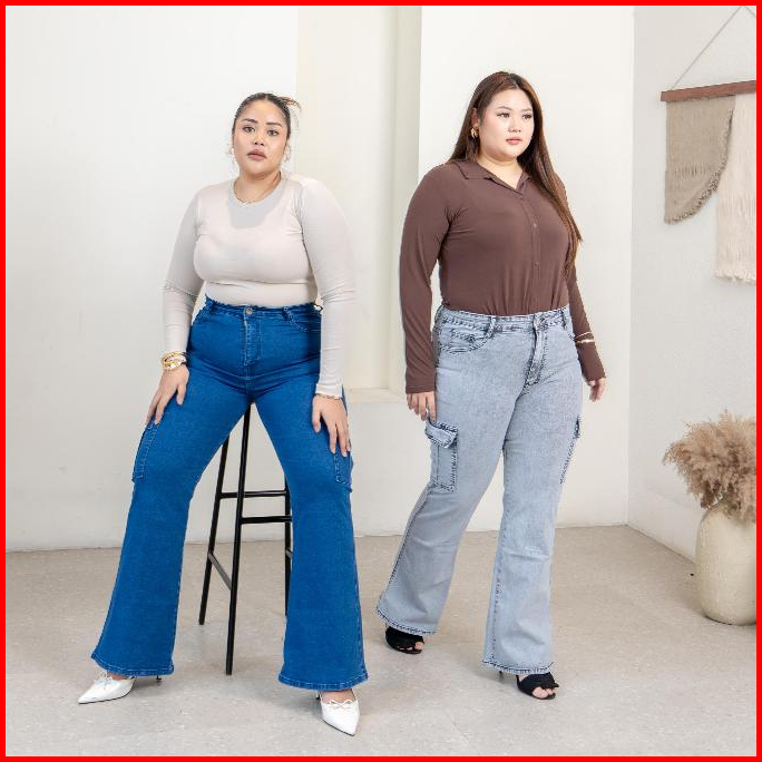 Celana Jeans Wanita Cargo Taller Jeans Ukuran Normal Jumbo