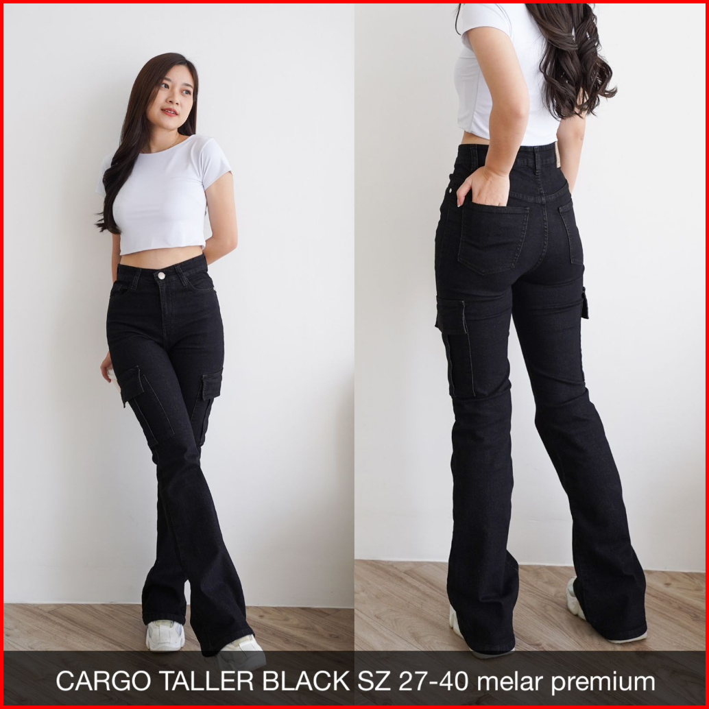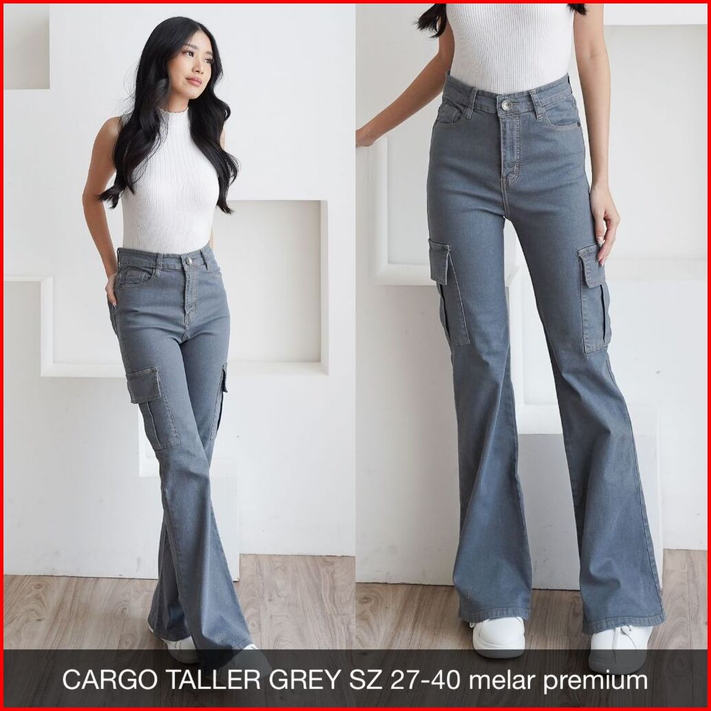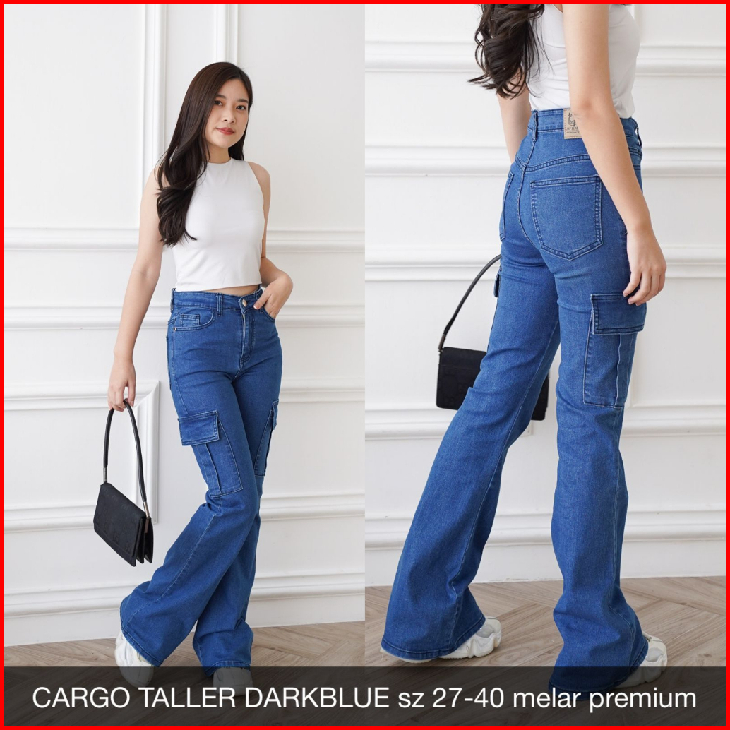 Celana Jeans Wanita Cargo Taller Jeans Ukuran Normal Jumbo