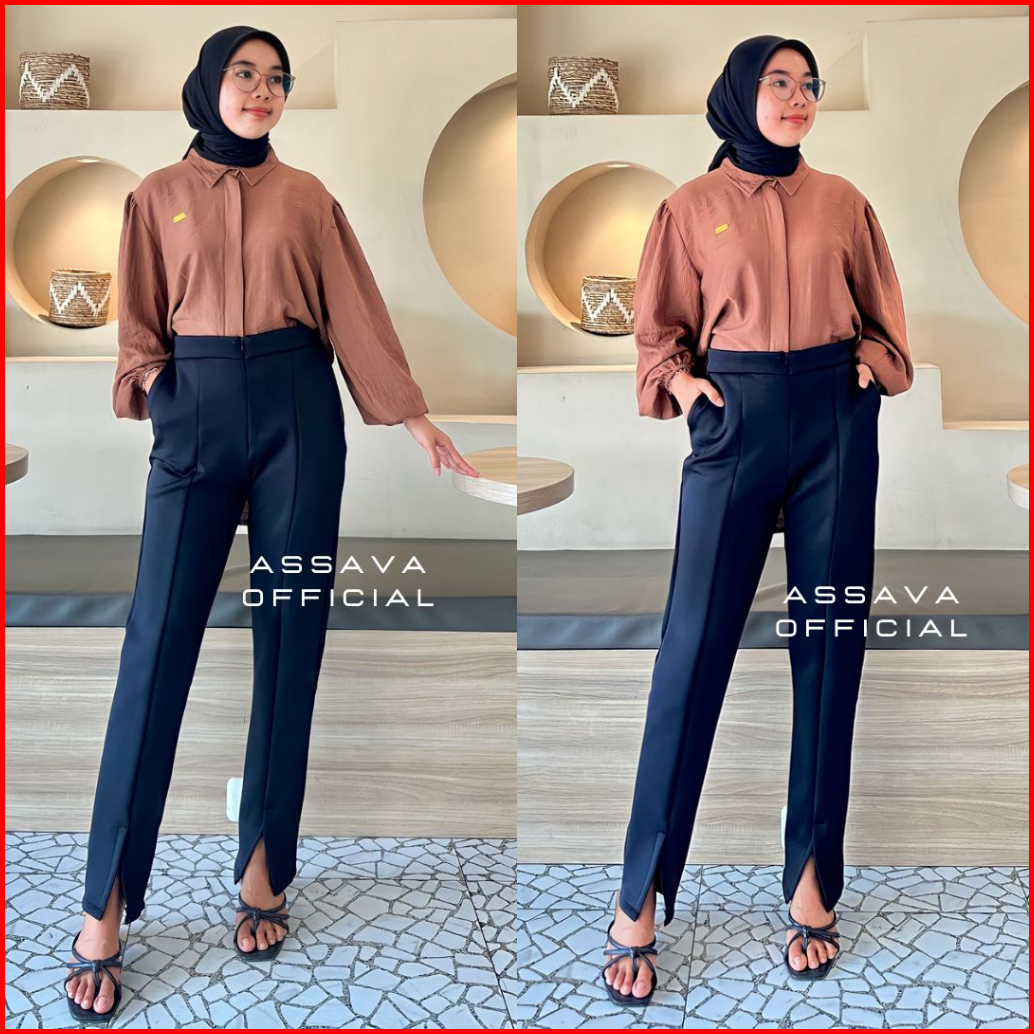 Celana Pensil Highwaist Scuba Premium - Celana Pensil Belah - Celana Kerja Wanita - Celana Kantor Wanita