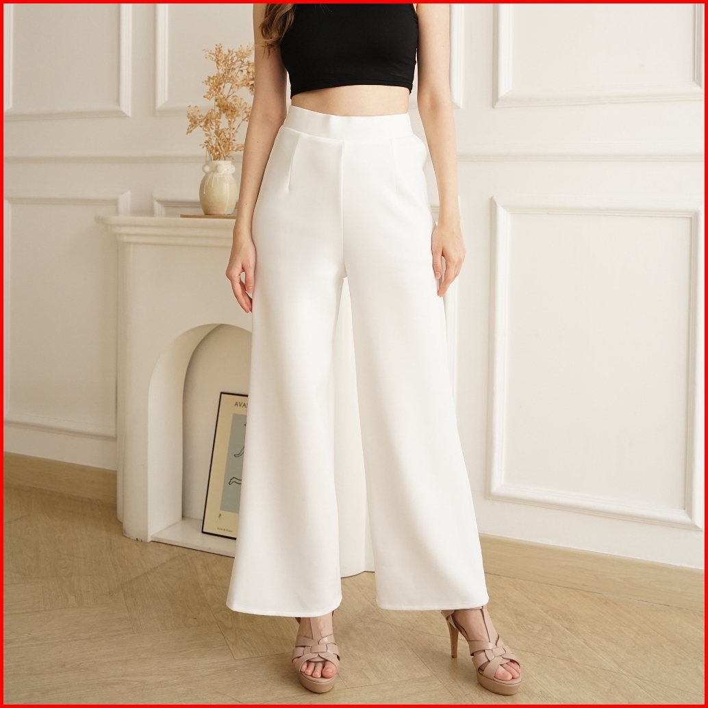 Haymeeidn - Celana Kulot Highwaist Wanita Bawahan Kulot Premium Bahan Scuba Nikola