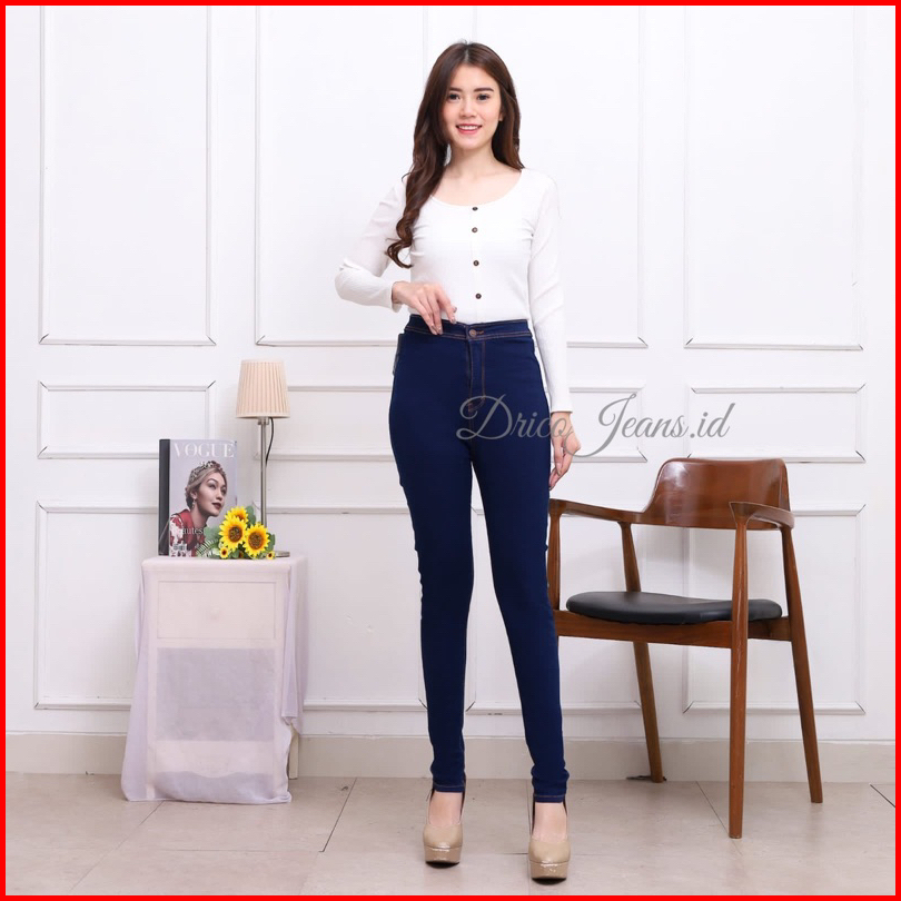 Lvida Celana Highwaist Jeans Wanita Pensil Stretch Panjang 98cm Anti Ngatung Kekinian Davida 1701