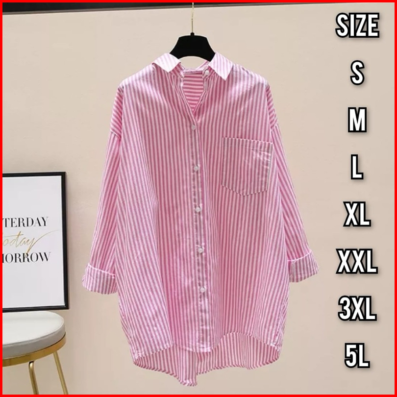 Briana Kemeja - Ukuran S M L Xl Xxl 3xl 5l - Kemeja Salur - Kemeja Wanita Jumbo - Kemeja Katun
