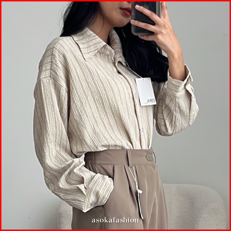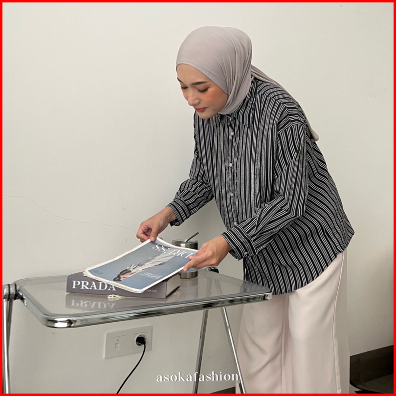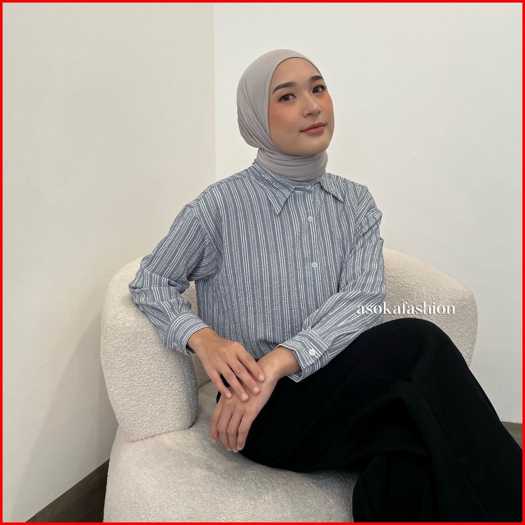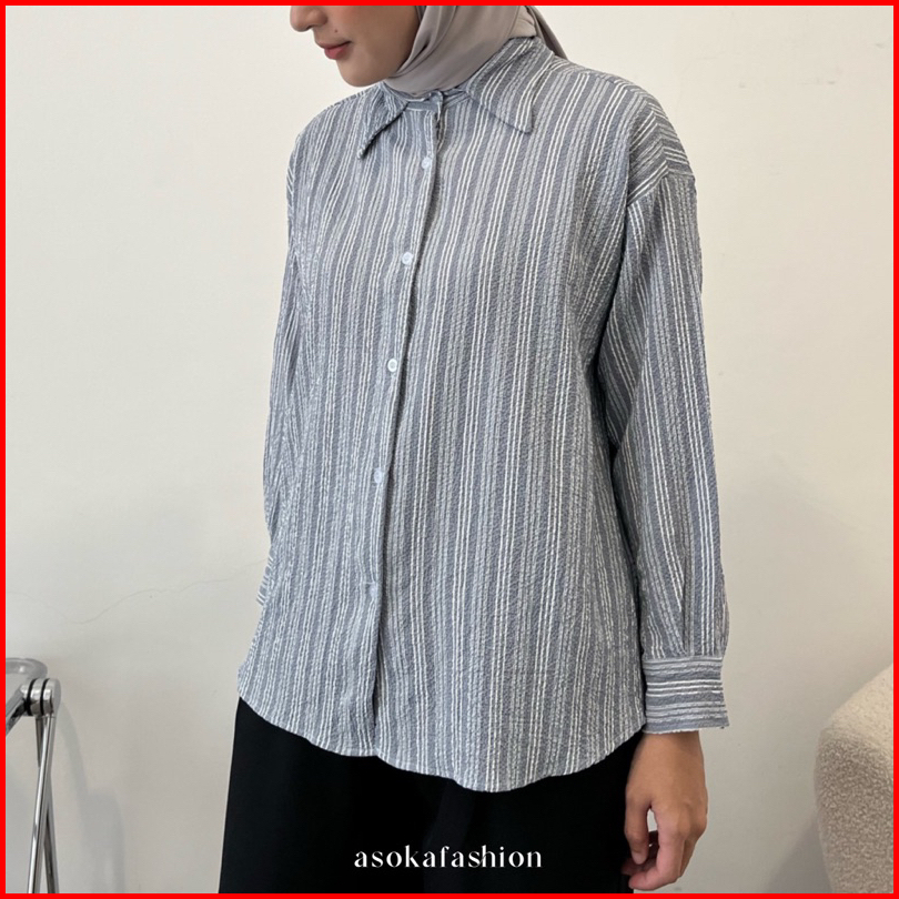 Asoka Diara Shirt 2066 - Kemeja Salur - Kemeja Oversize - Atasan Wanita