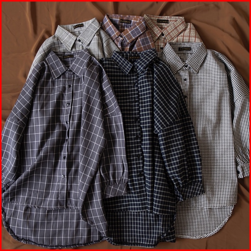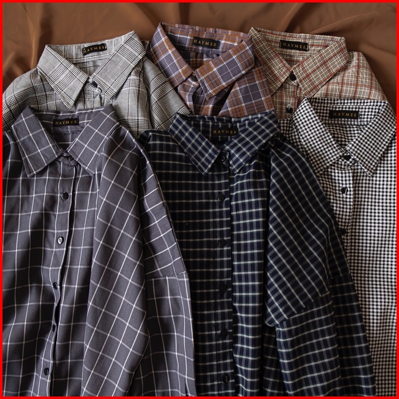 Haymeeidn - Kemeja Flanel Oversize Wanita Atasan Jumbo Flannel Premium